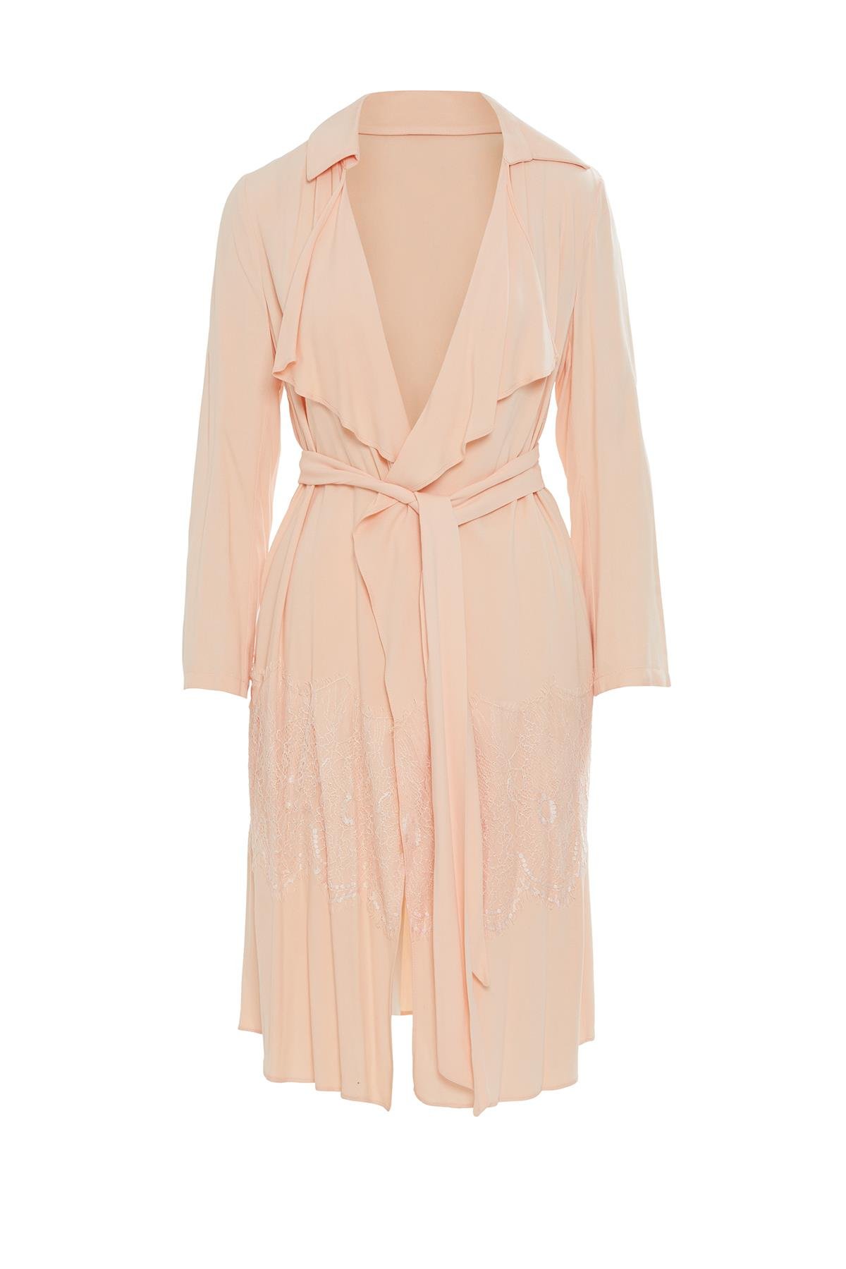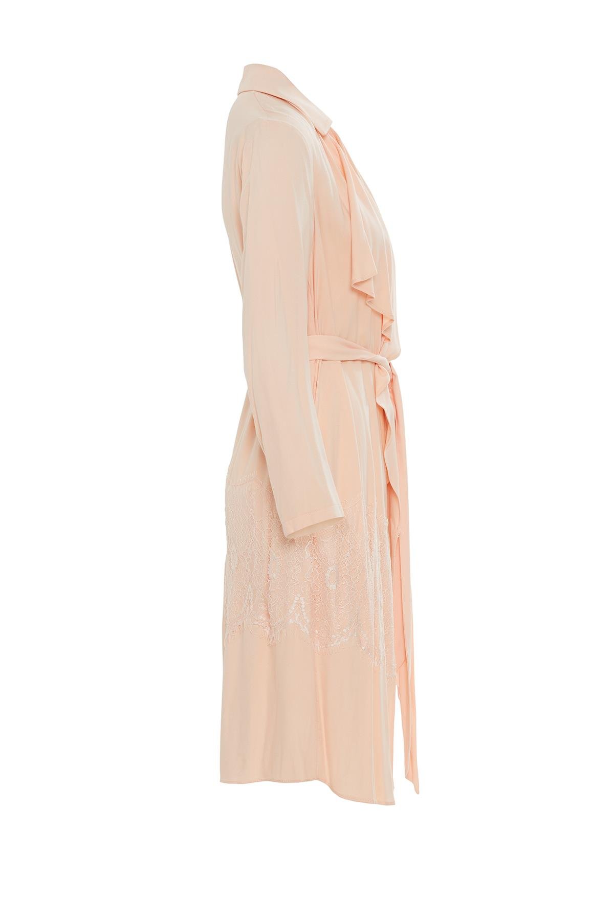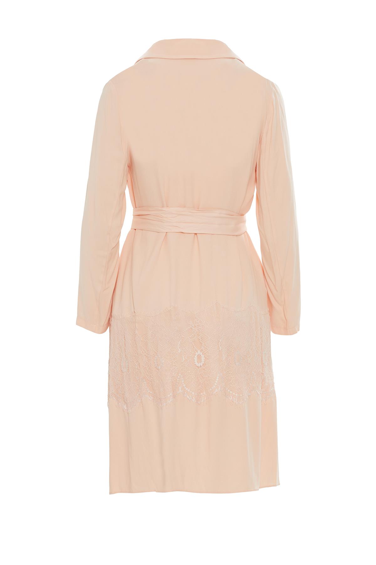 Alt Kısmı Dantel Detaylı Kruvaze Yaka Pembe Ceket (M17YYY0091)