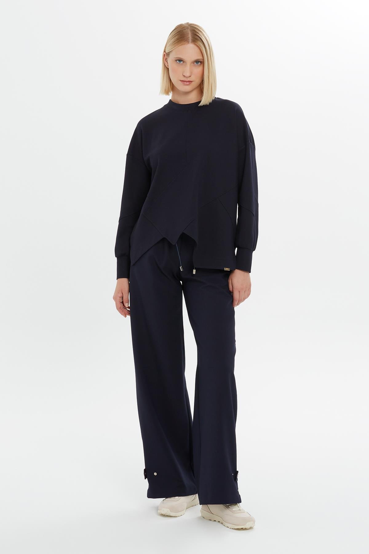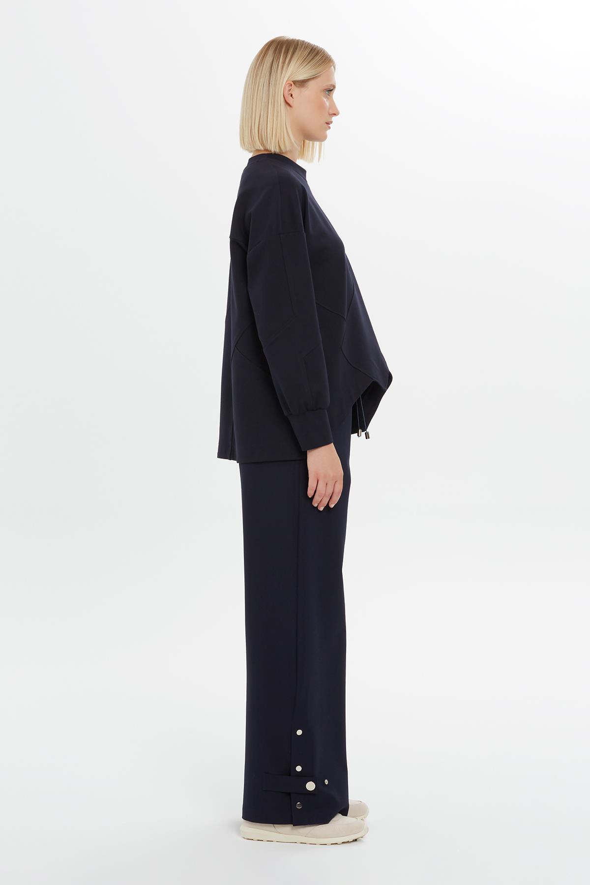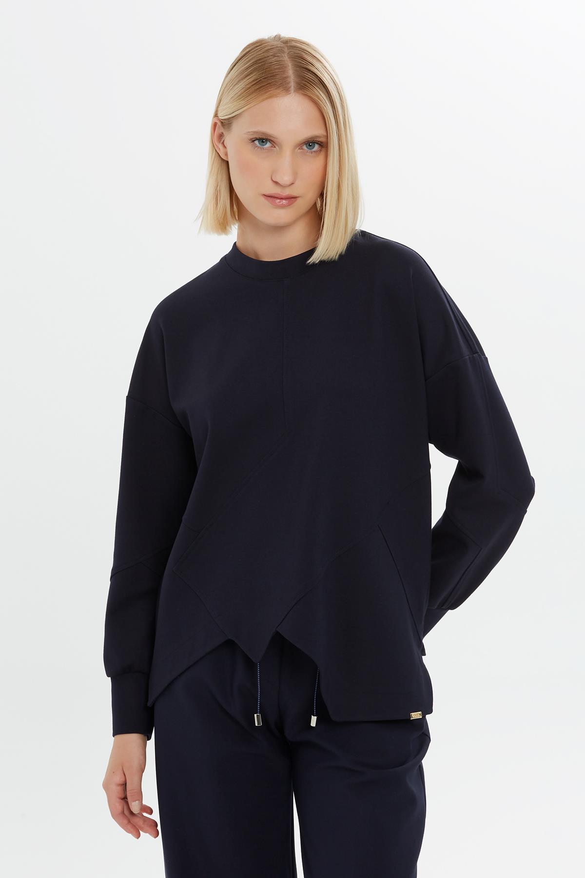 Asimetrik Kesim Hakim Yaka Lacivert Sweatshirt (M4KM2K0881)