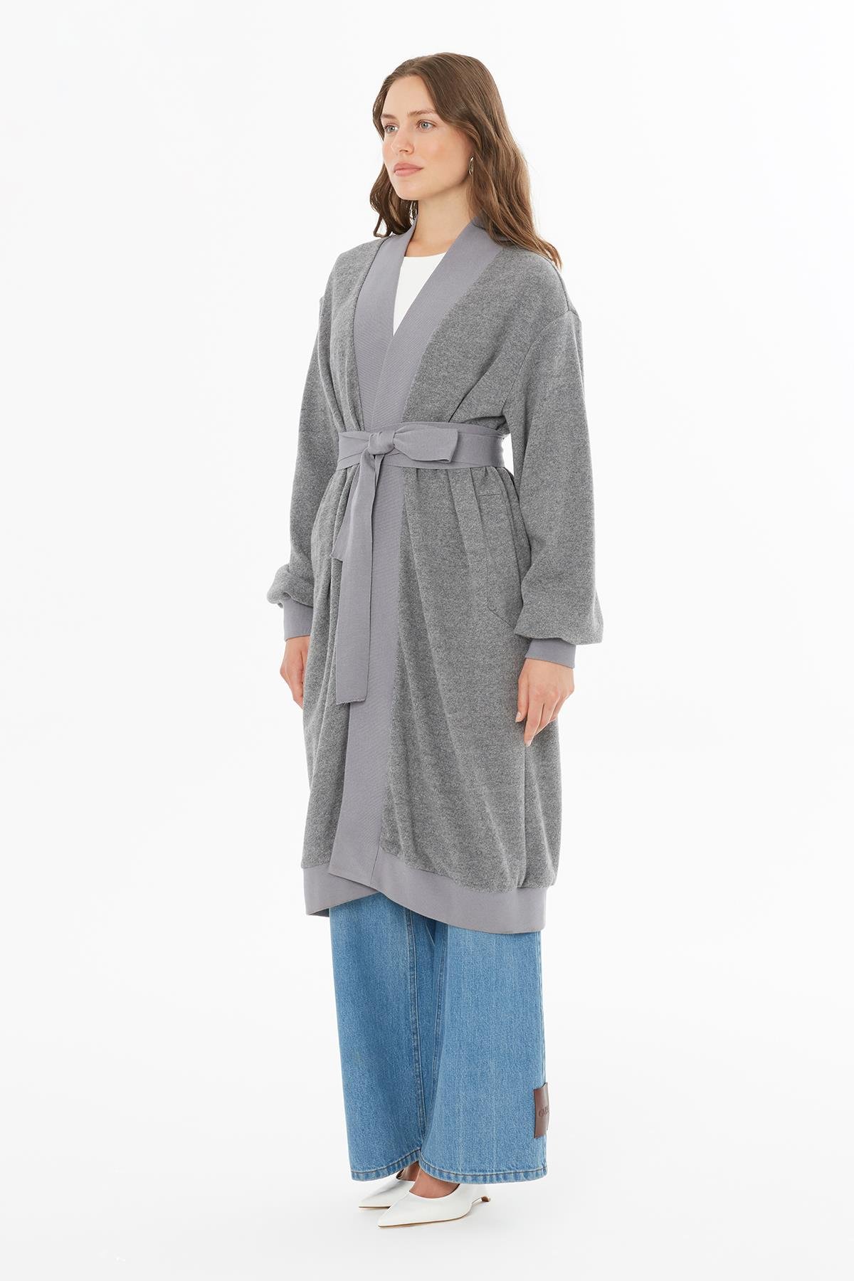 Belden Kuşaklı Gri Hırka (M5KM4M0471)