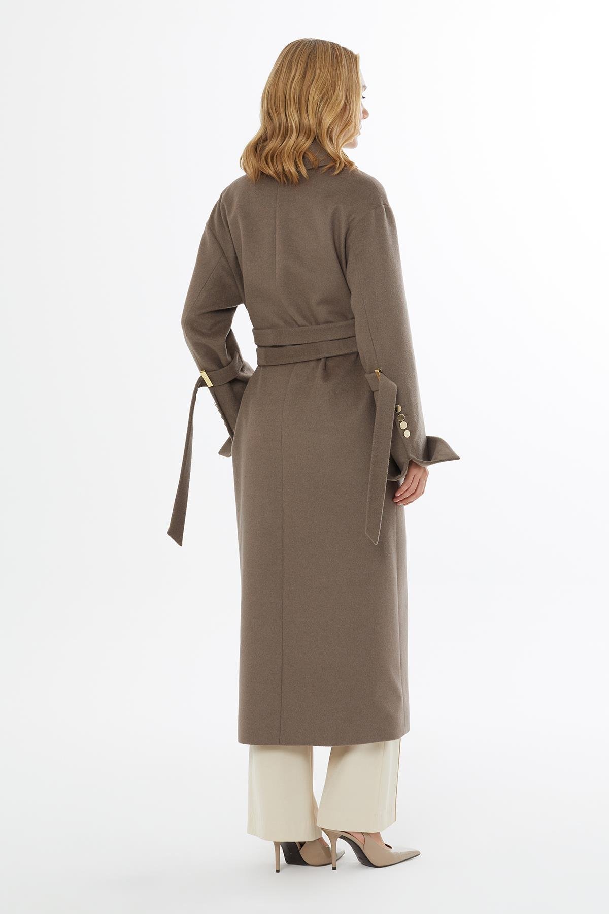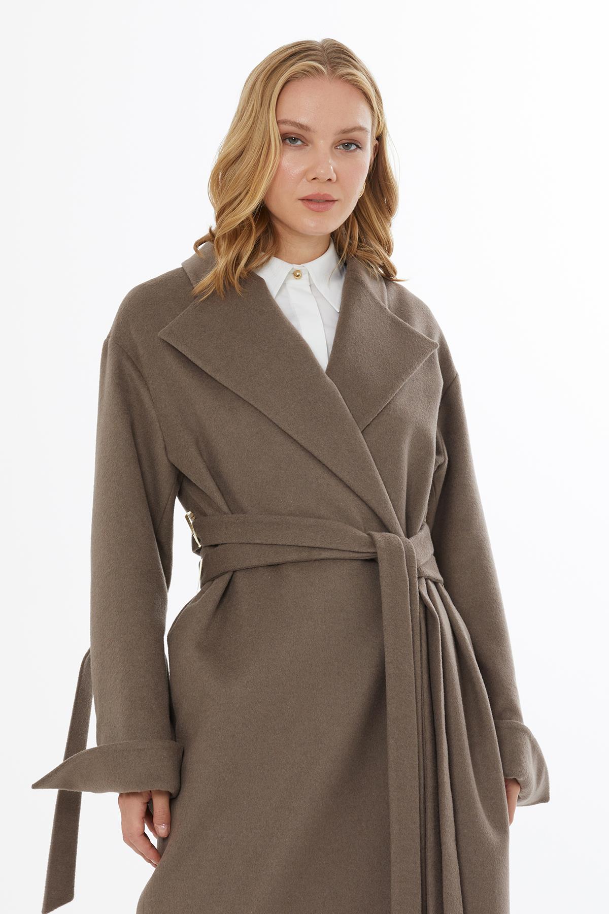 Çift Kemerli Oversize Düz Vizon Kaban (M5KM4M2111)