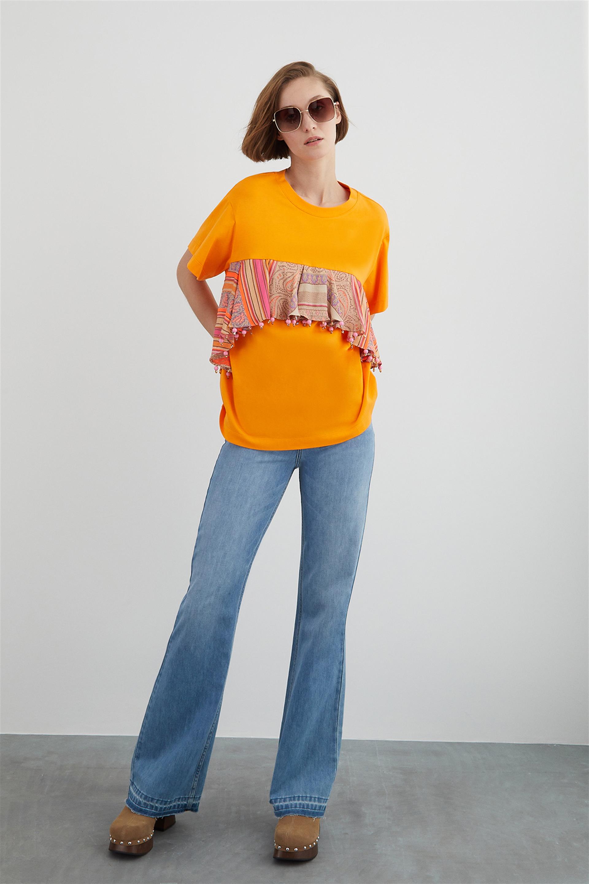 Desenli Pamuklu Oversize Turuncu Tshırt (M3YM2H1591)