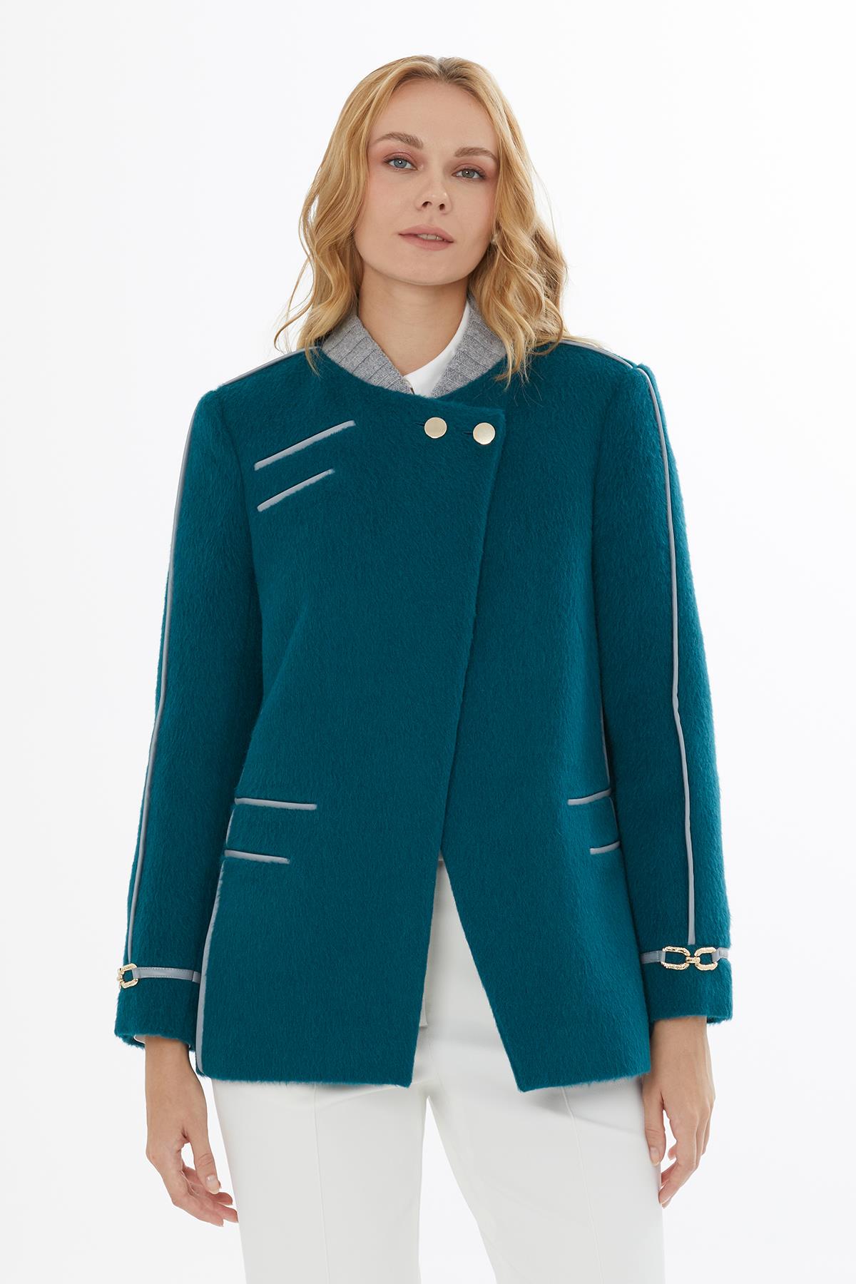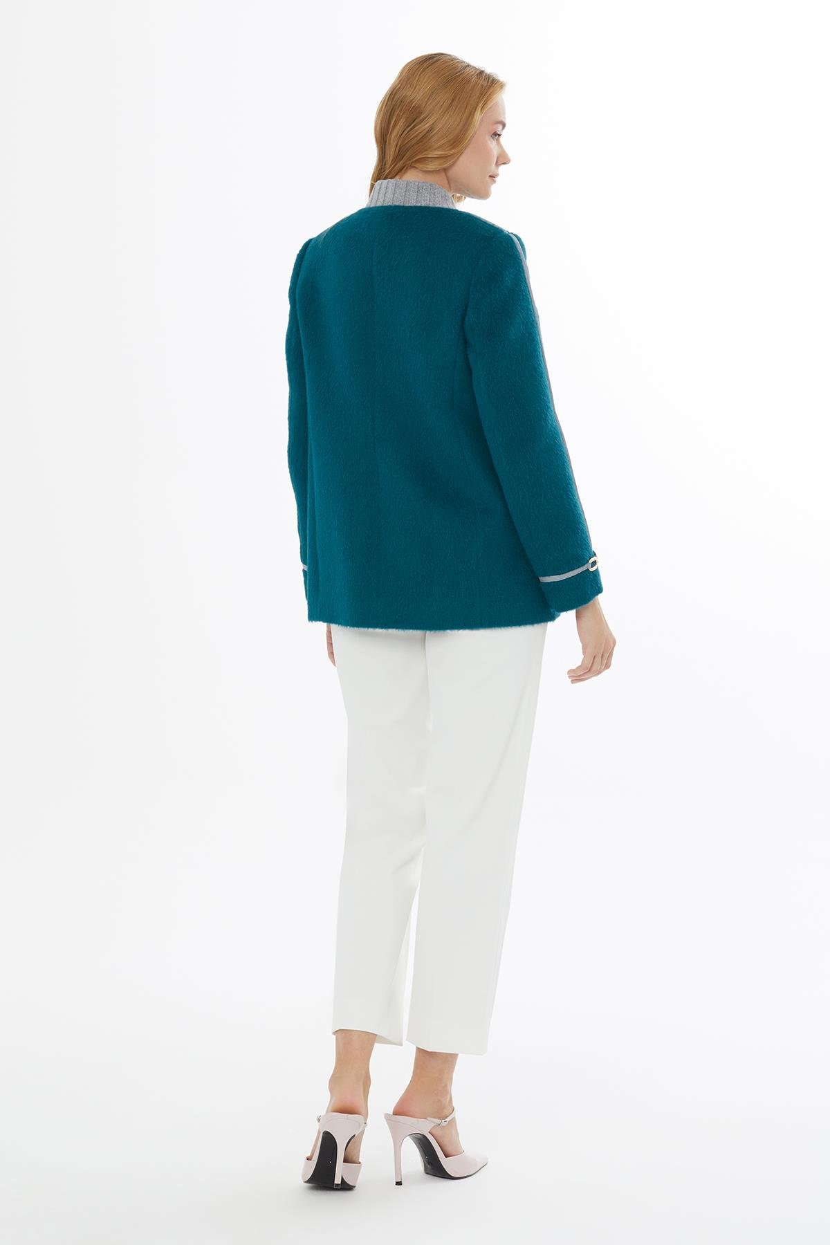 Dik Yaka Cepli Düğme Kapamalı Yeşil Ceket (M5KM4M2091)
