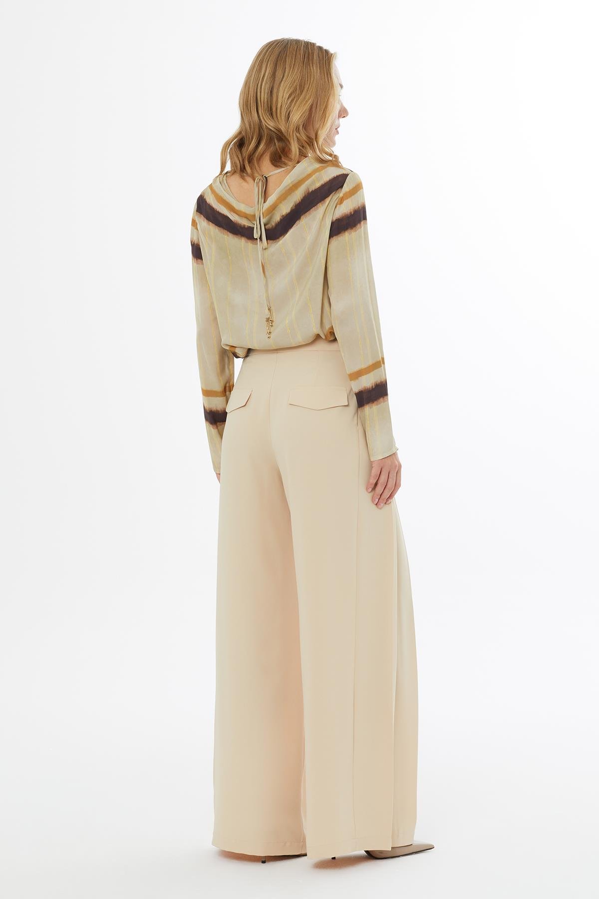 Beige Pants with Pleat Detail and Pockets (M5KM1M0871)