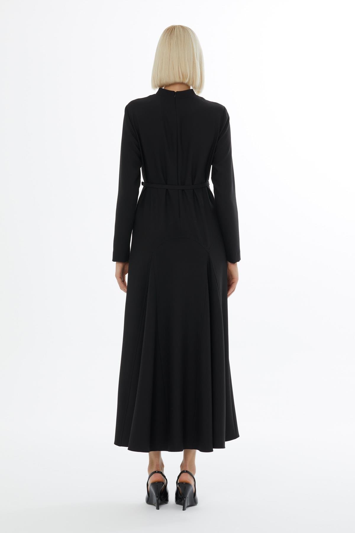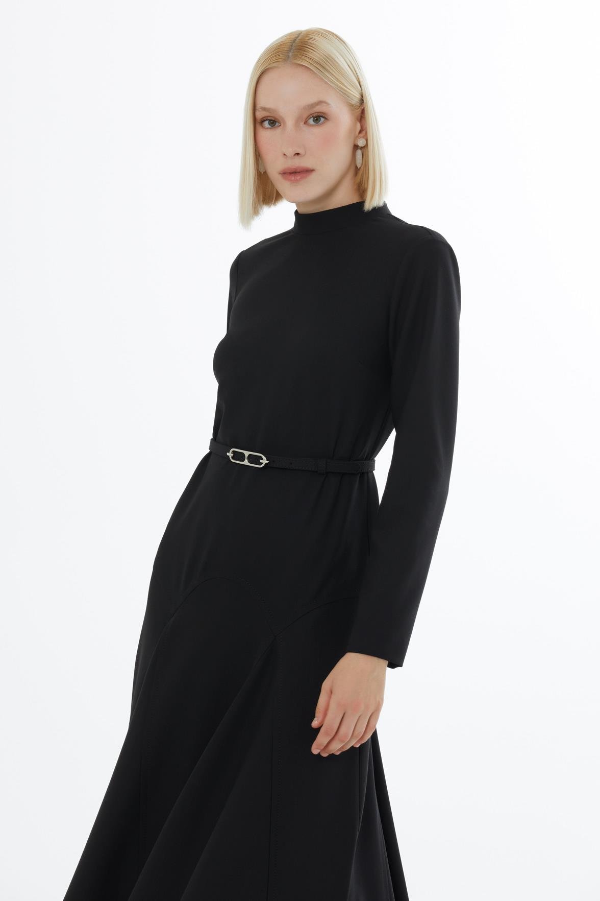Black Belted Dress with Back Zipper Closure (M5KMZM0201)