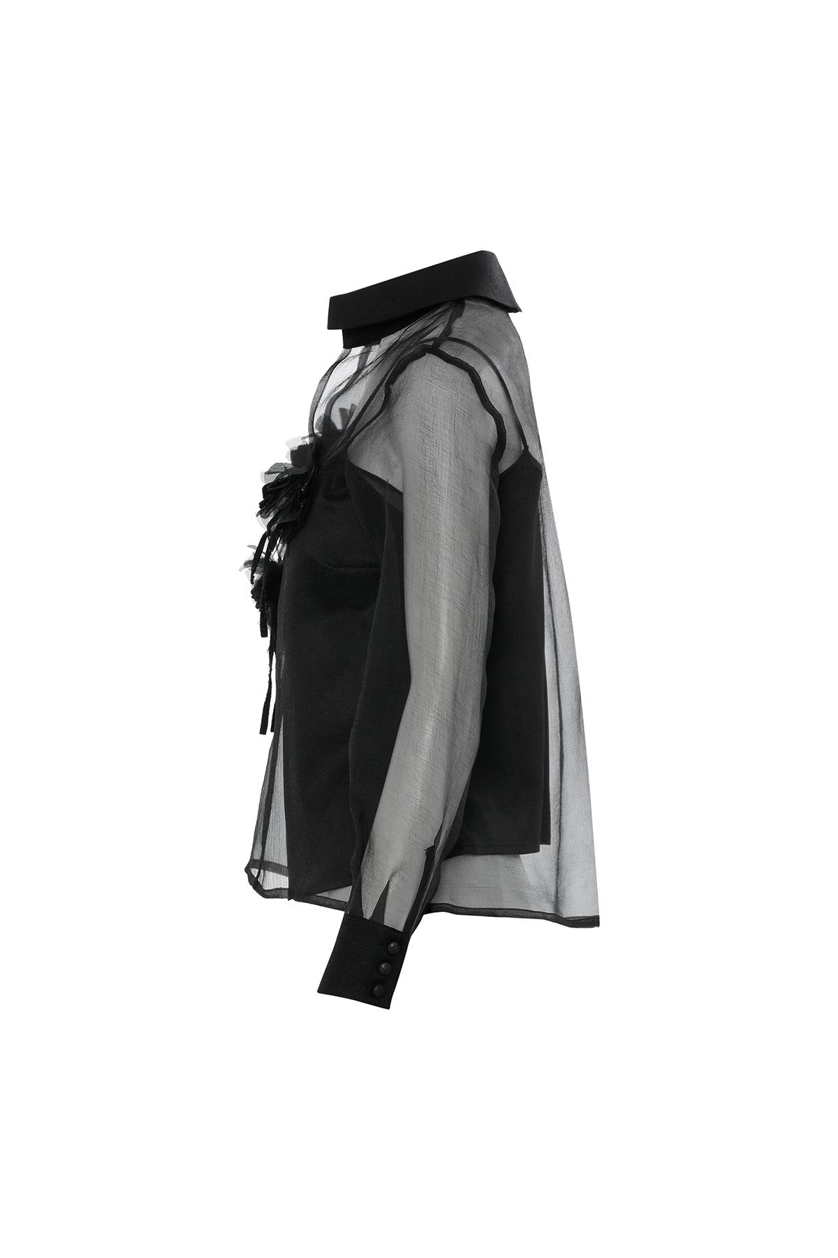 Black Chiffon Shirt with Built-In Lining (M4KM2K1241)