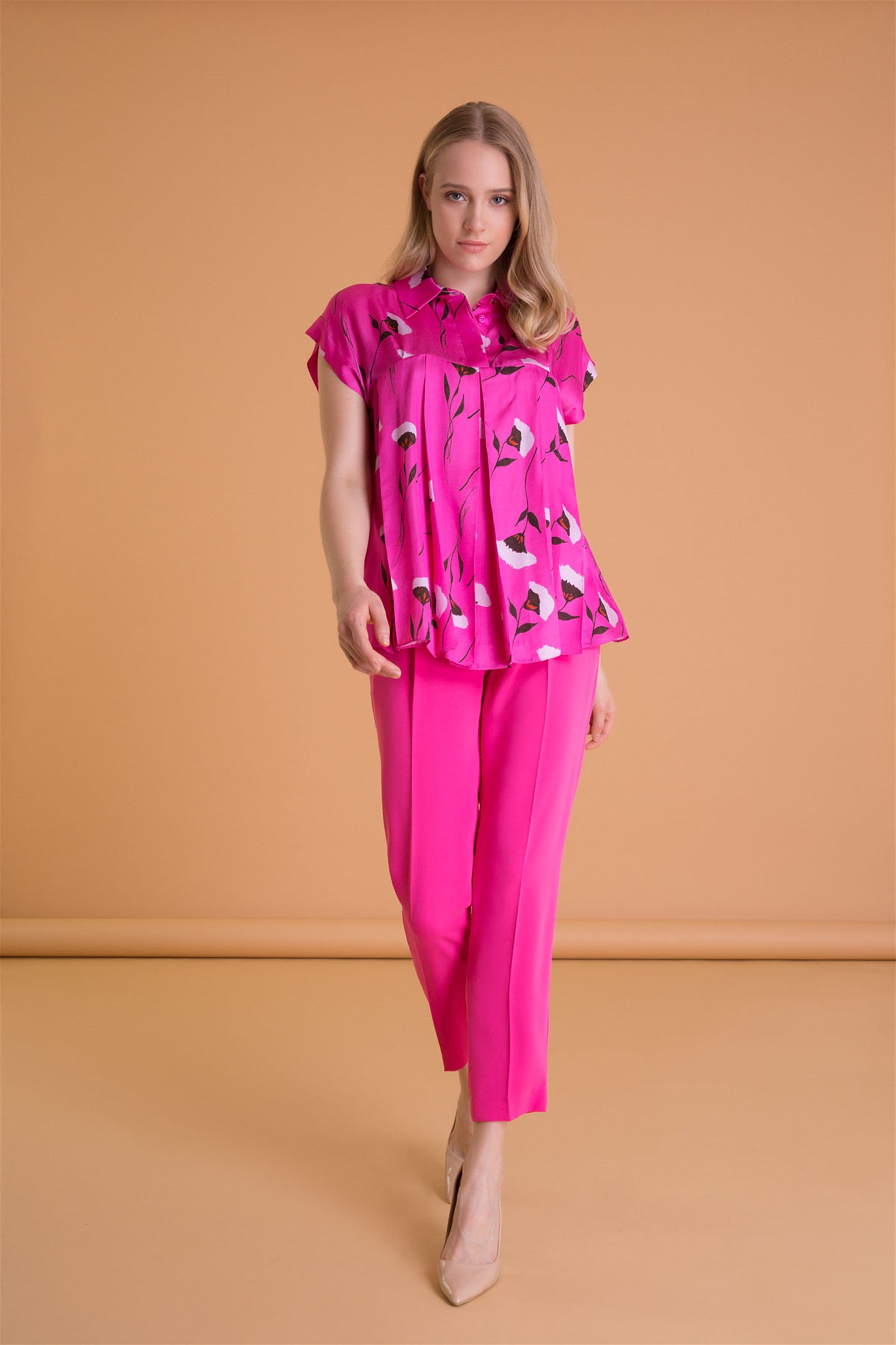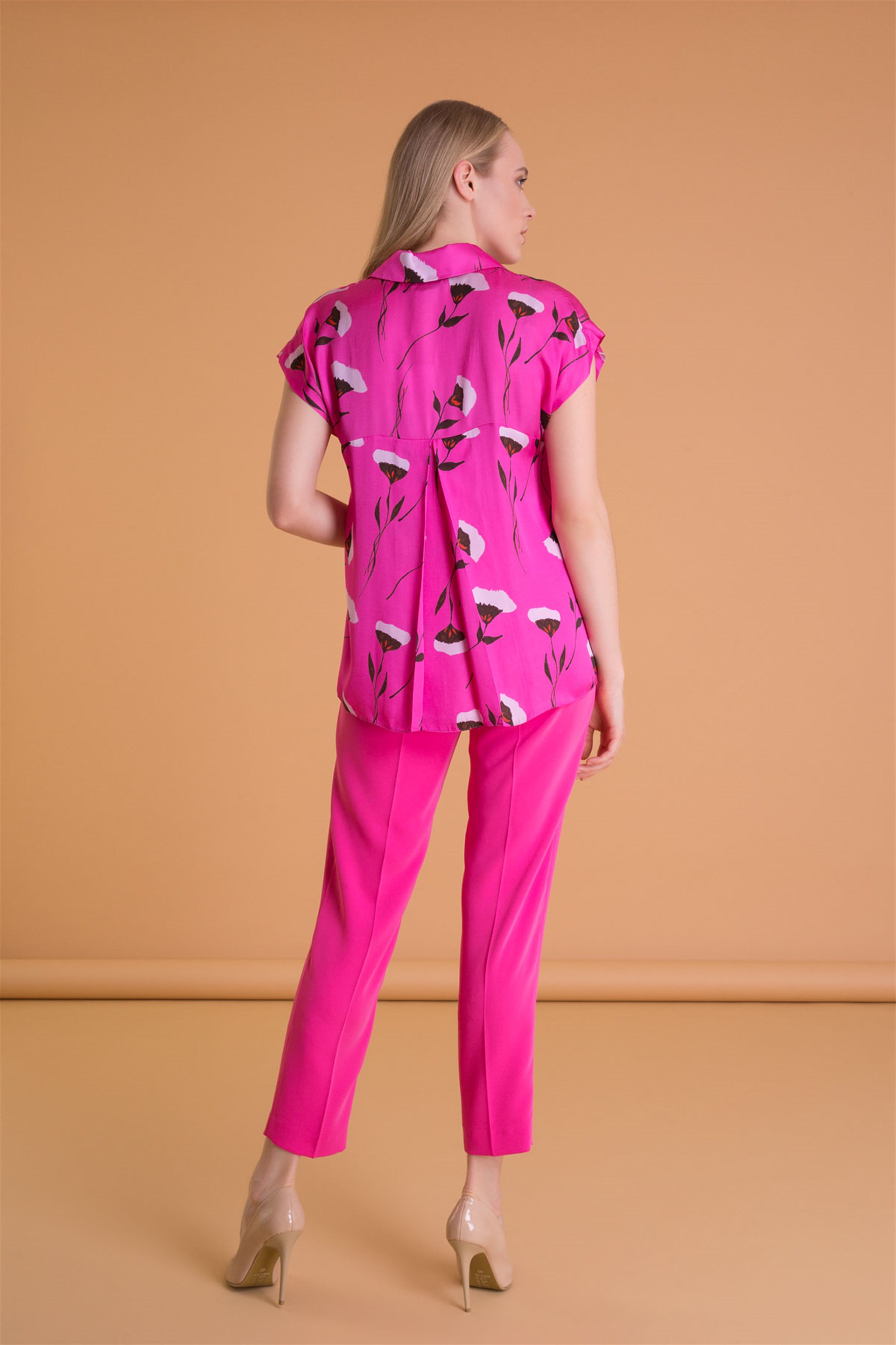 Floral Patterned Shirt Collar Fuchsia Blouse (M0YMBB0161)