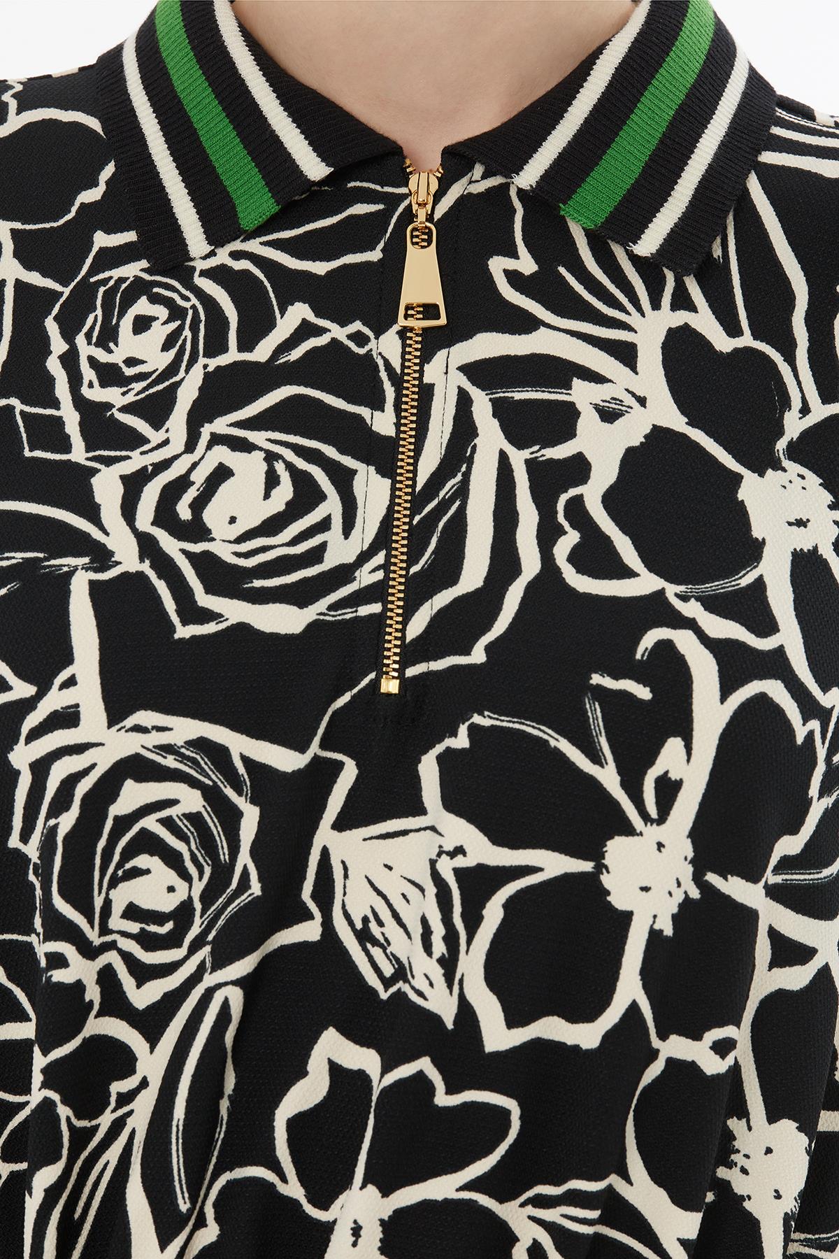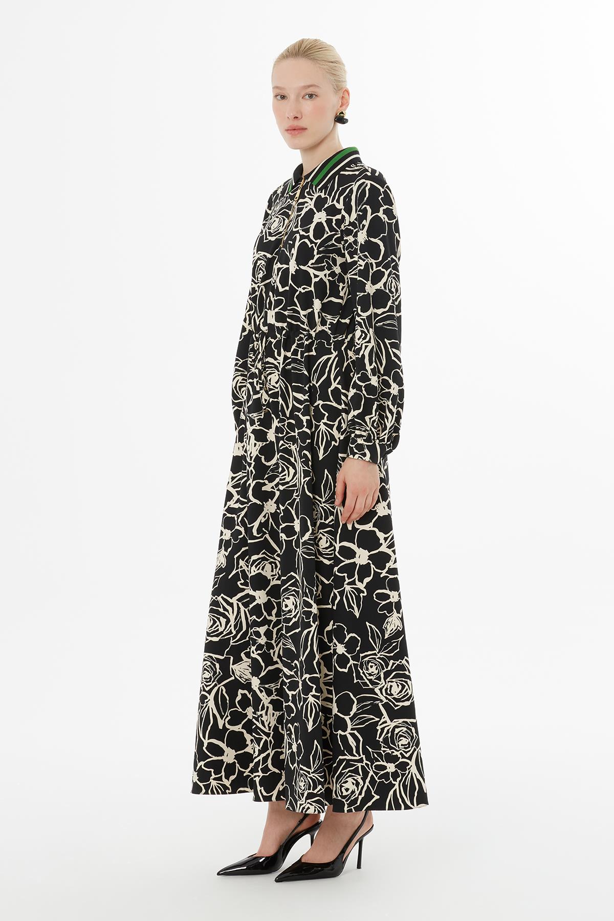 Long Black Dress with Front Zipper and Collar (M5KMZM0021)