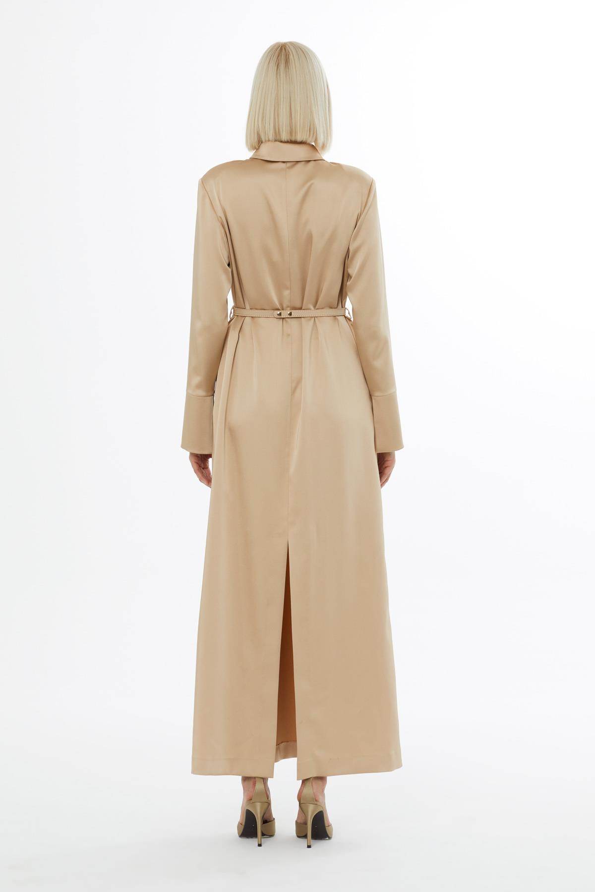 Long Sleeve Beige Dress with Collar and Belt (M5KMZM0191)