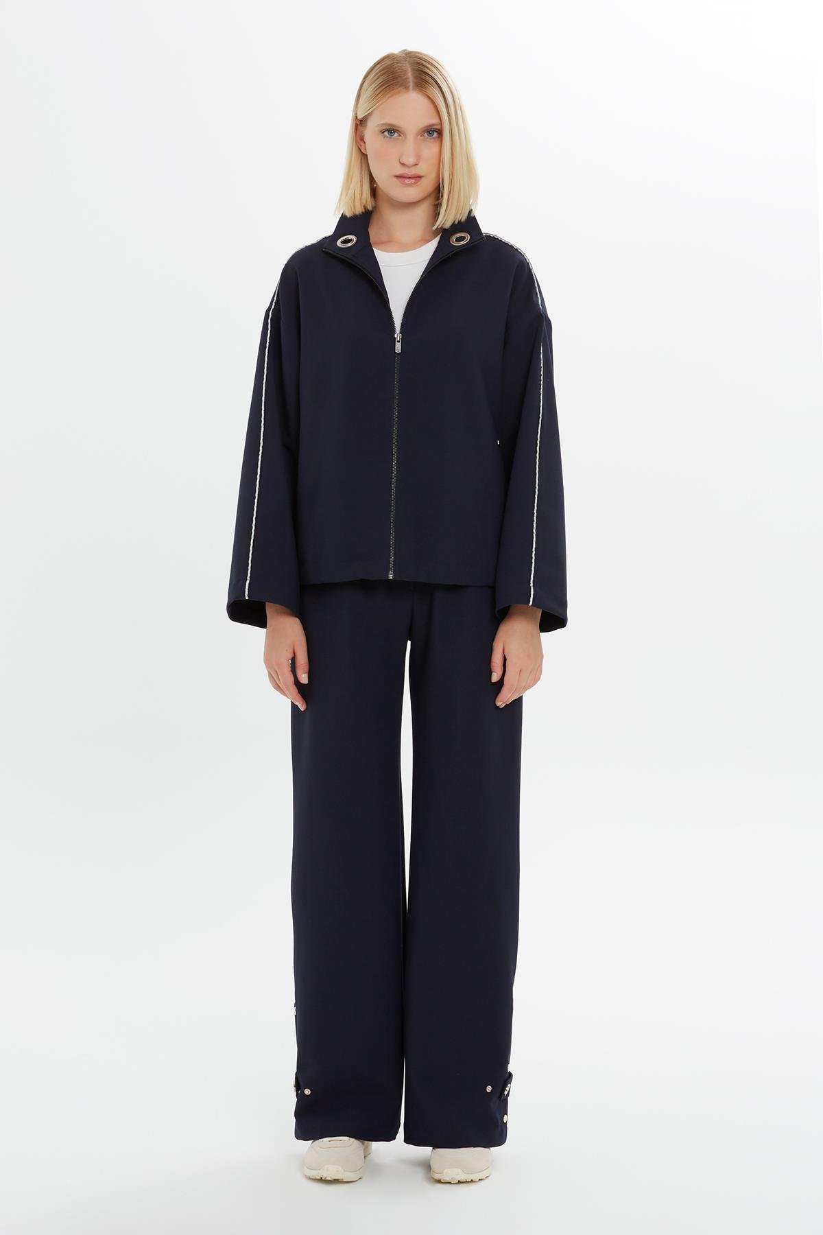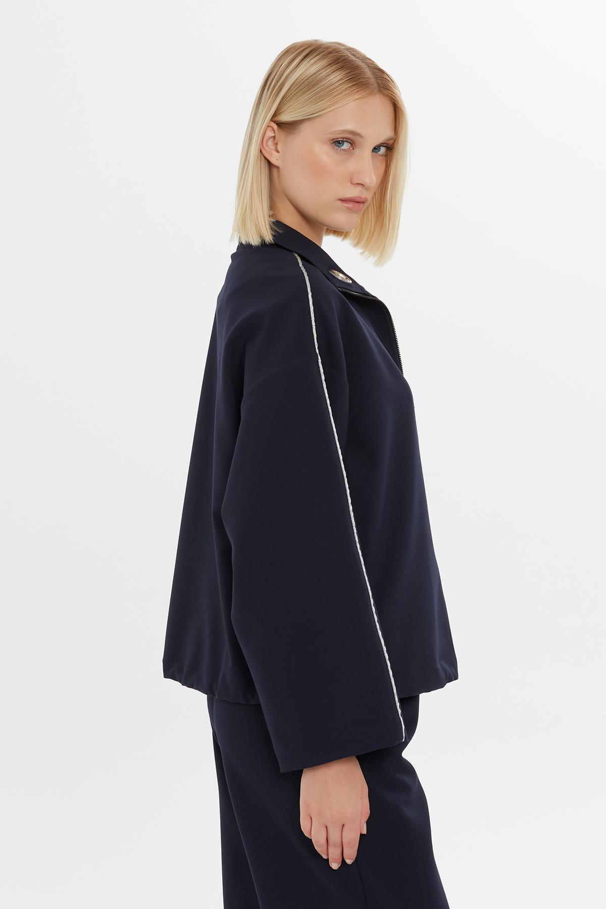 Navy Blue Shabby Jacket With White Line Detail On The Sleeves (M4KM4K0681)