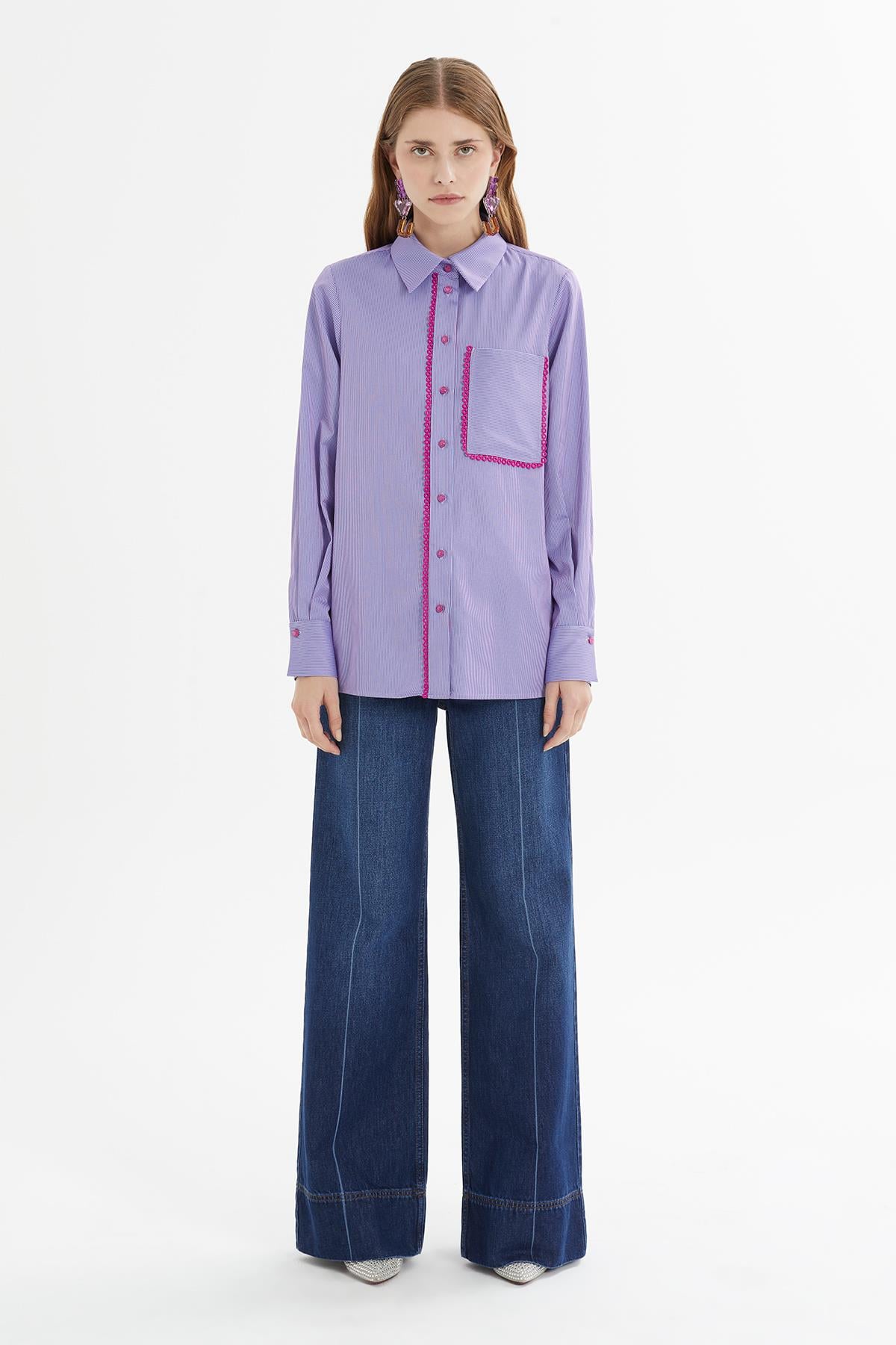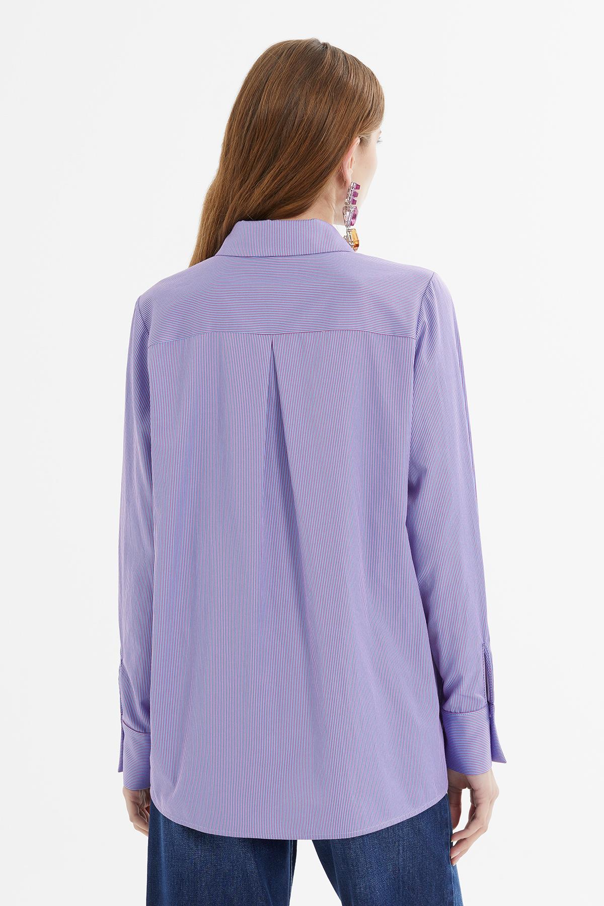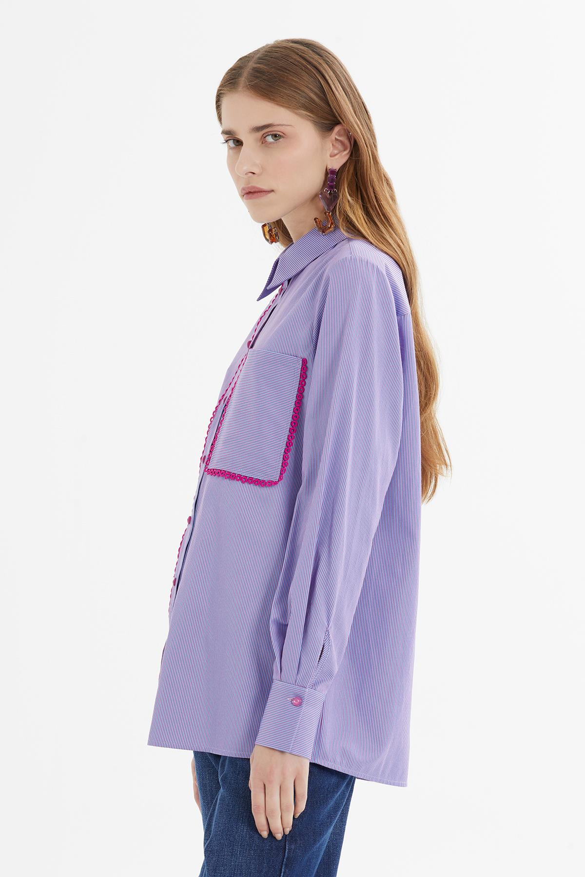 Pink Embroidered Purple Striped Shirt (M4KMWK0141)
