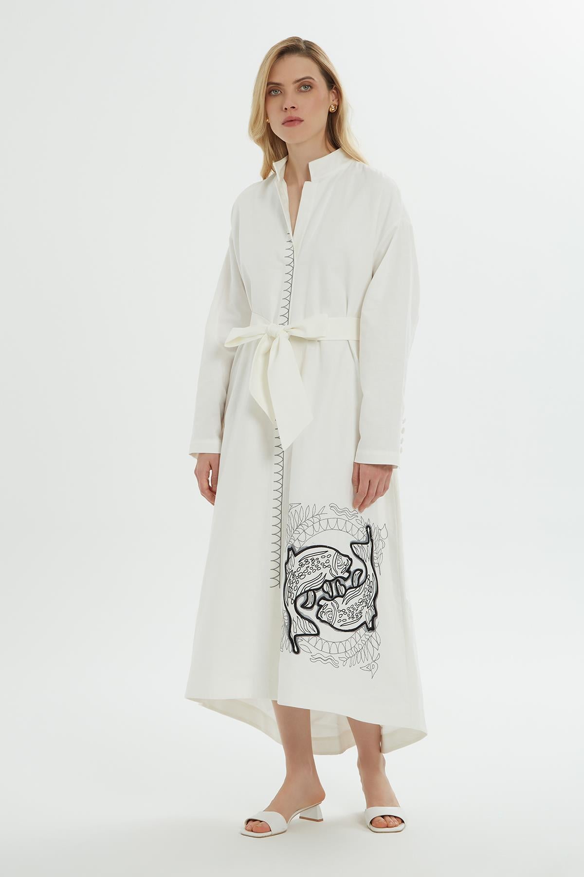 Off-White Oversized Shirt Dress with Embroidery (M4YM5J1631)