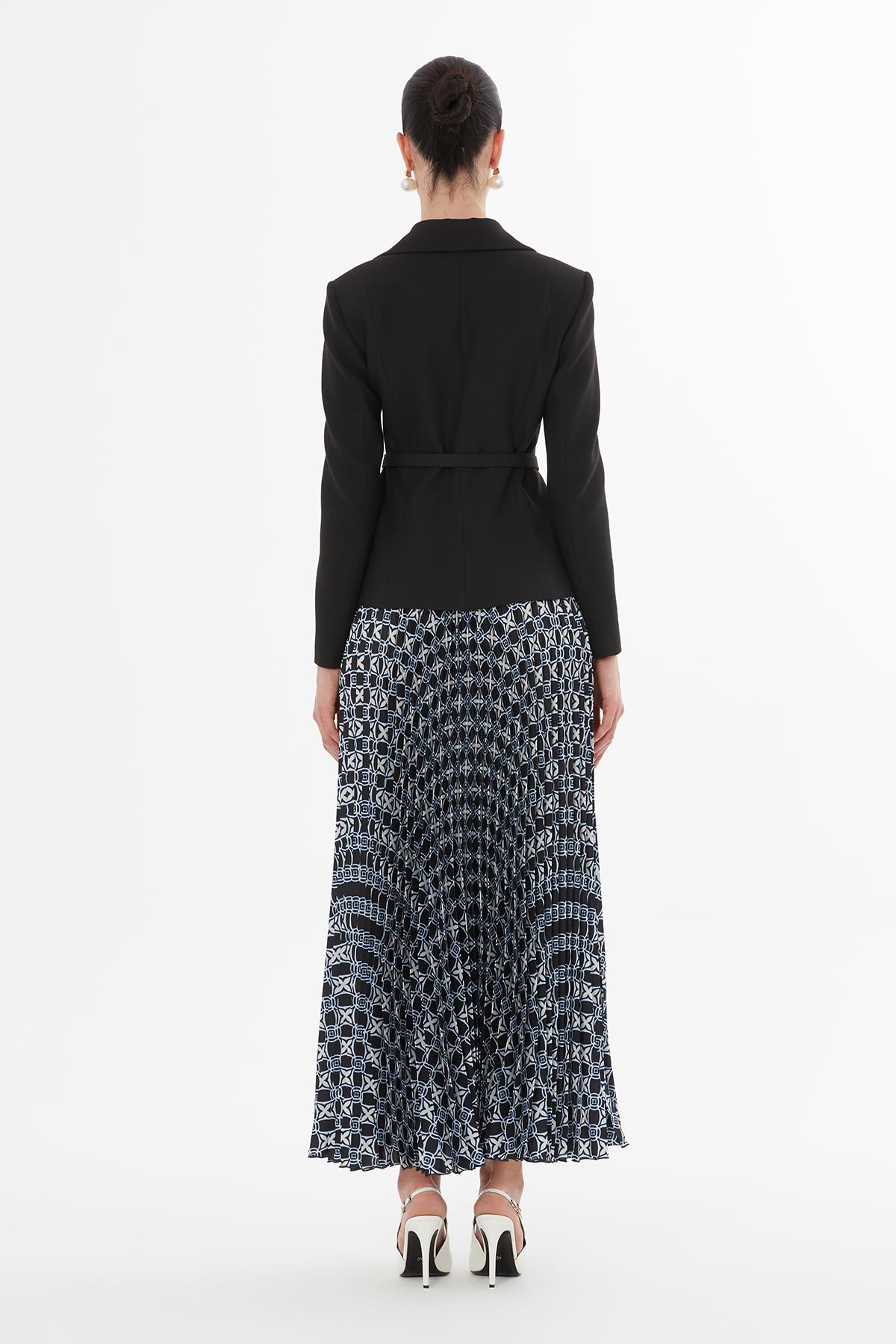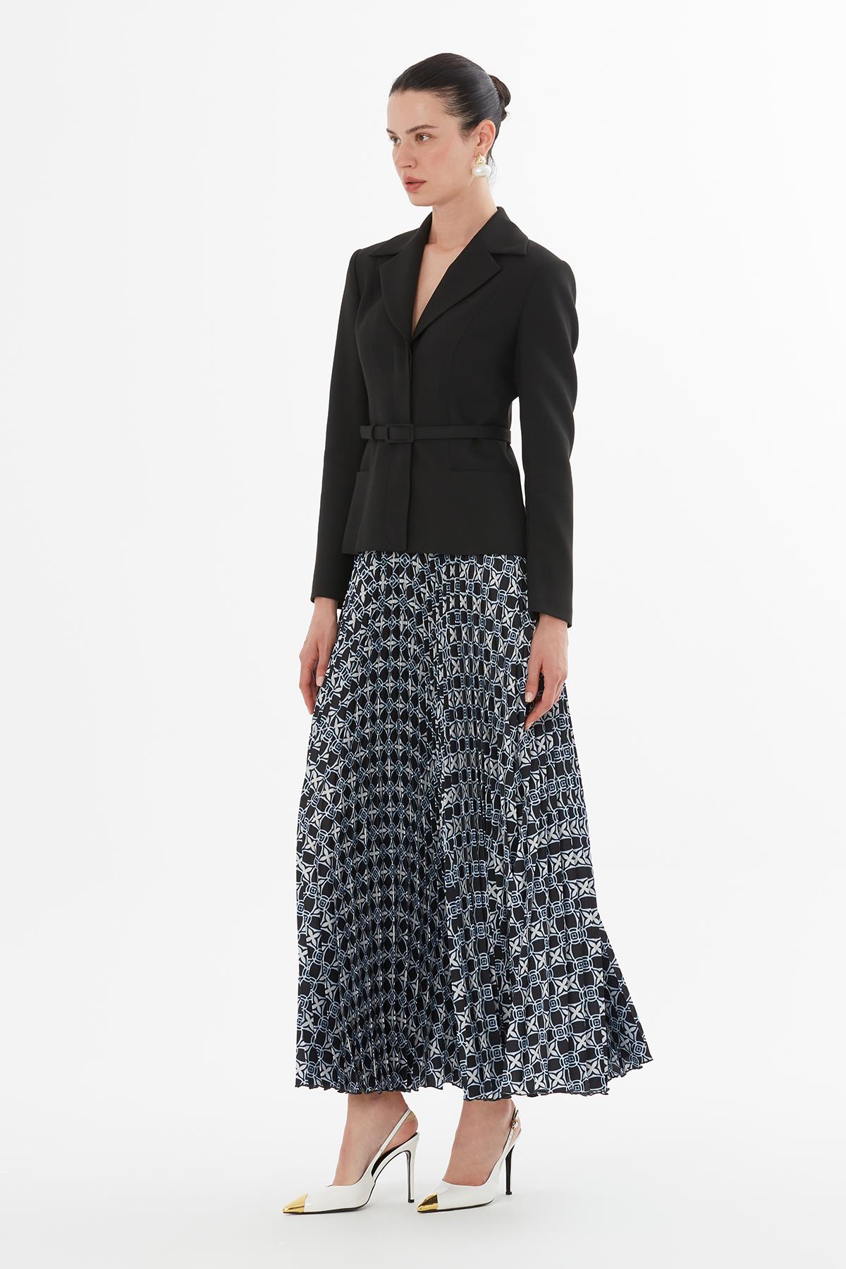 Pleated-Hem Black Set with Concealed Placket Jacket and Belt (M5KMTKM342)