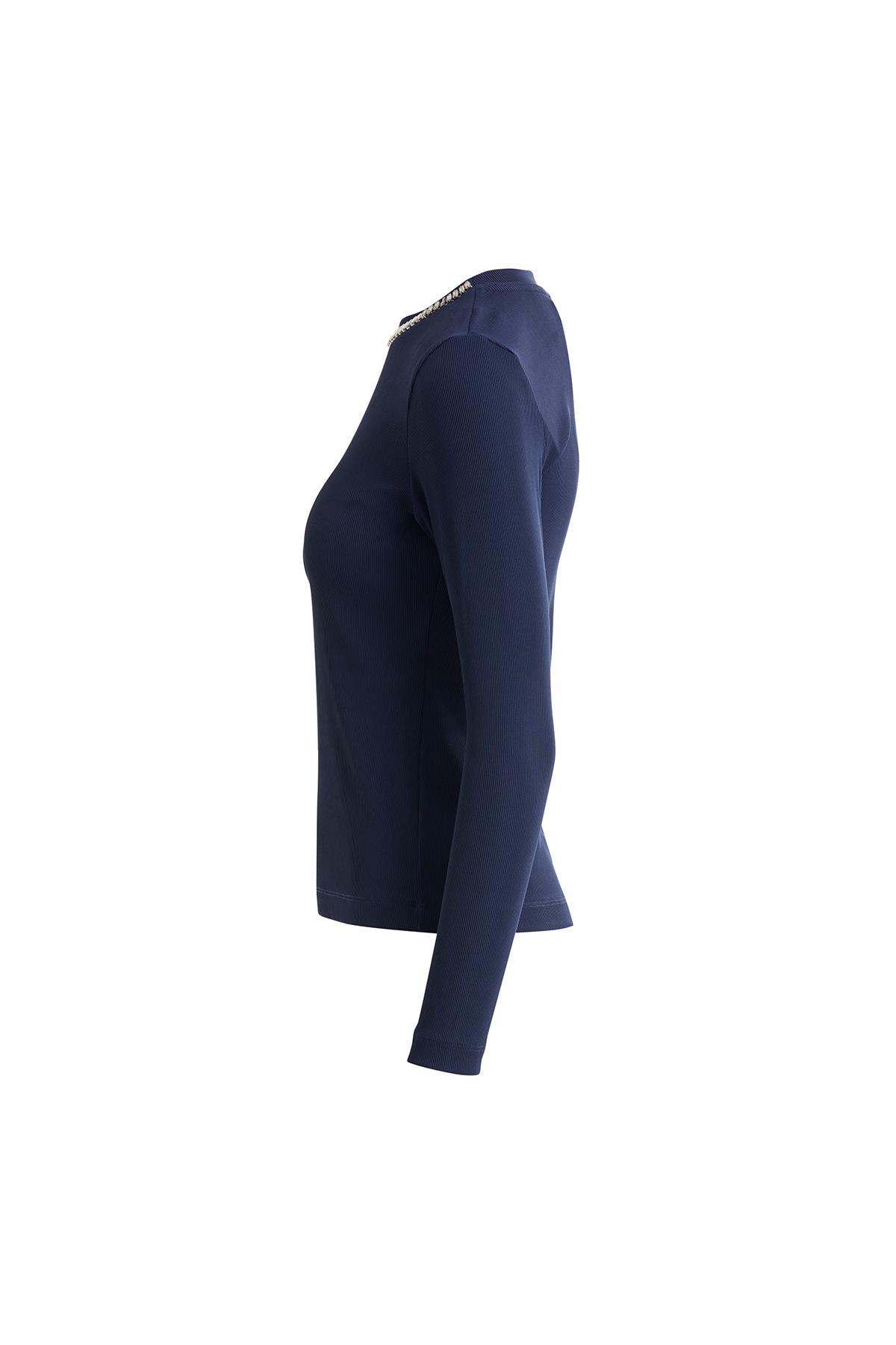 Rhinestone-Embellished Neck Long Sleeve Red Blouse (M5KM2M1581)