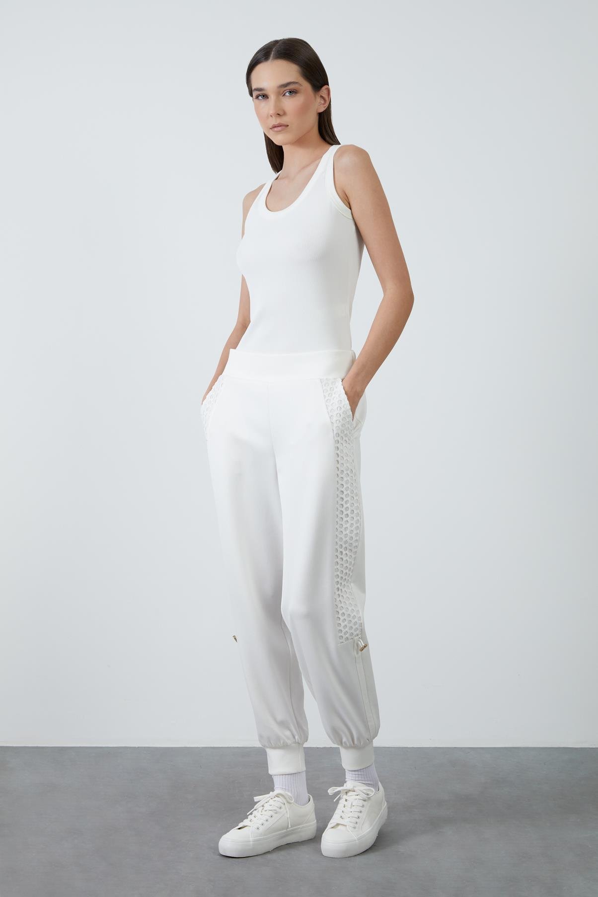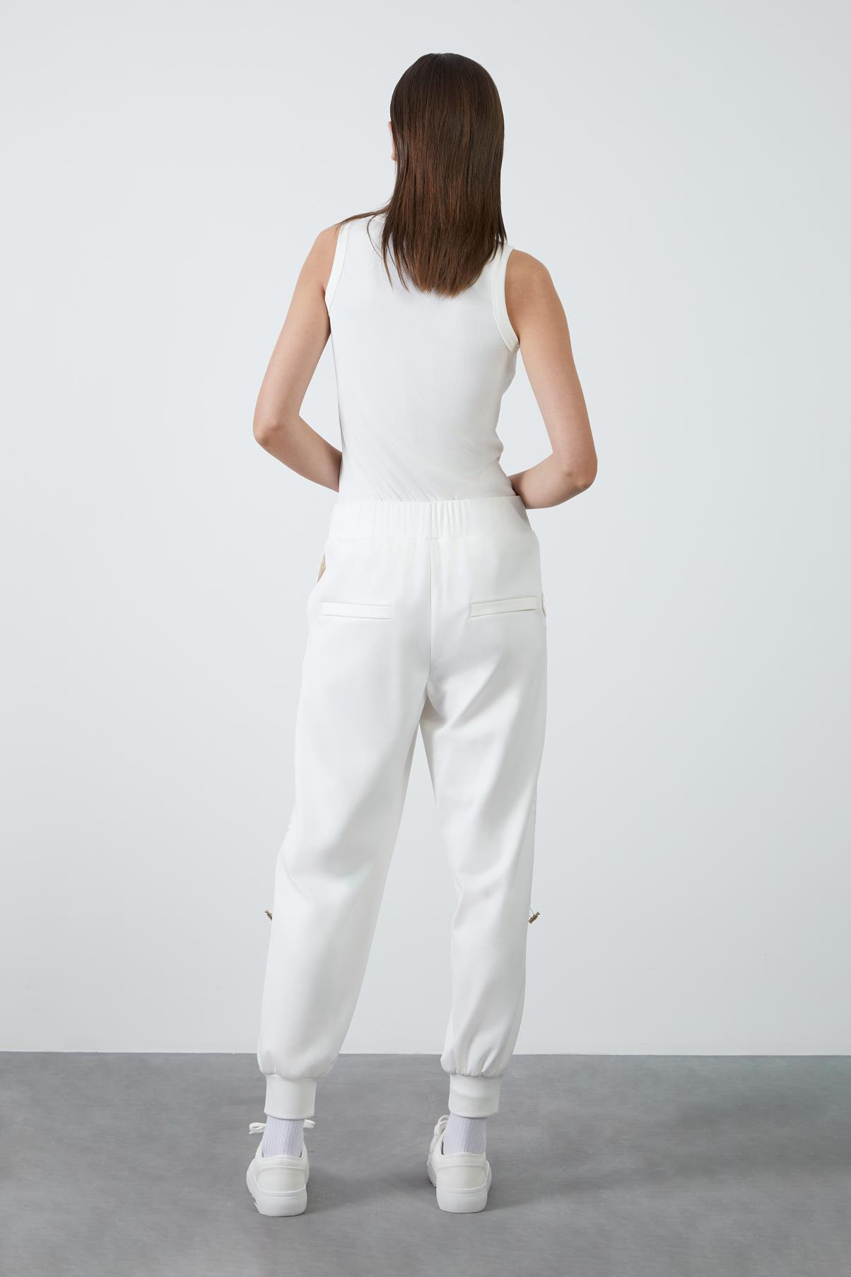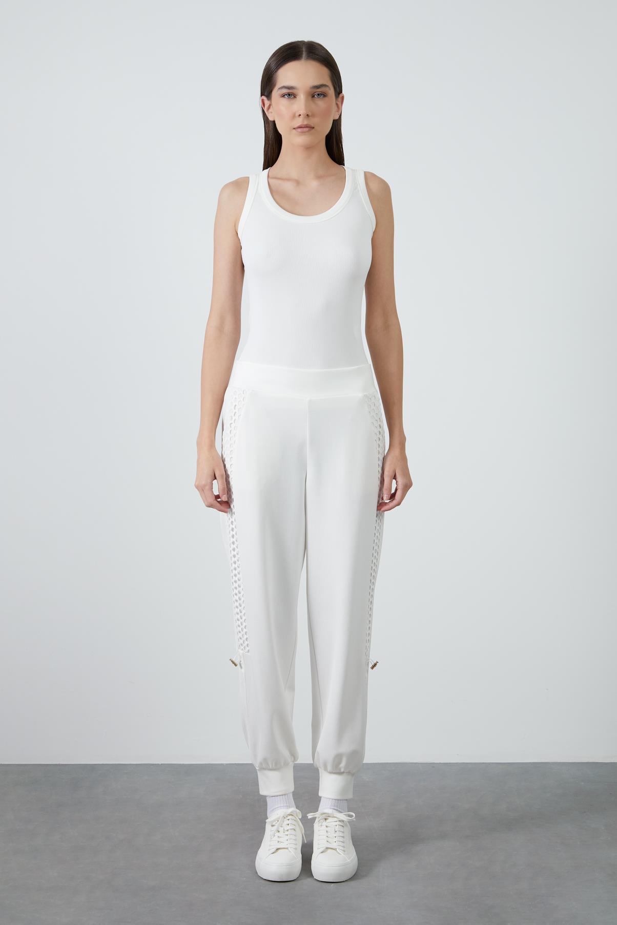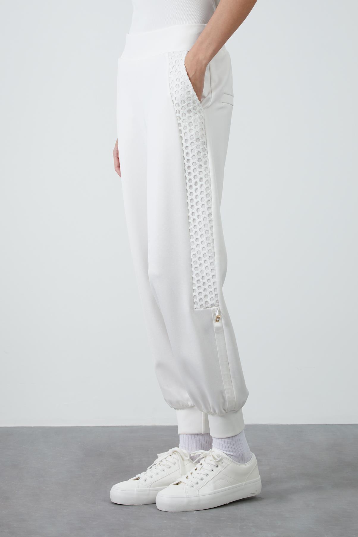 Side Mesh Detail Banded Bottom Ecru Tracksuit (M4YM1J0261)