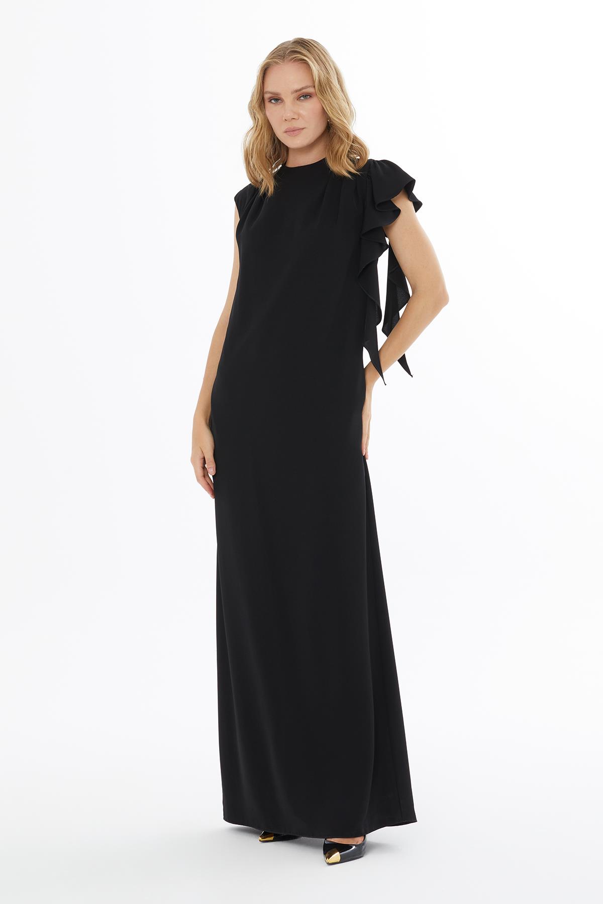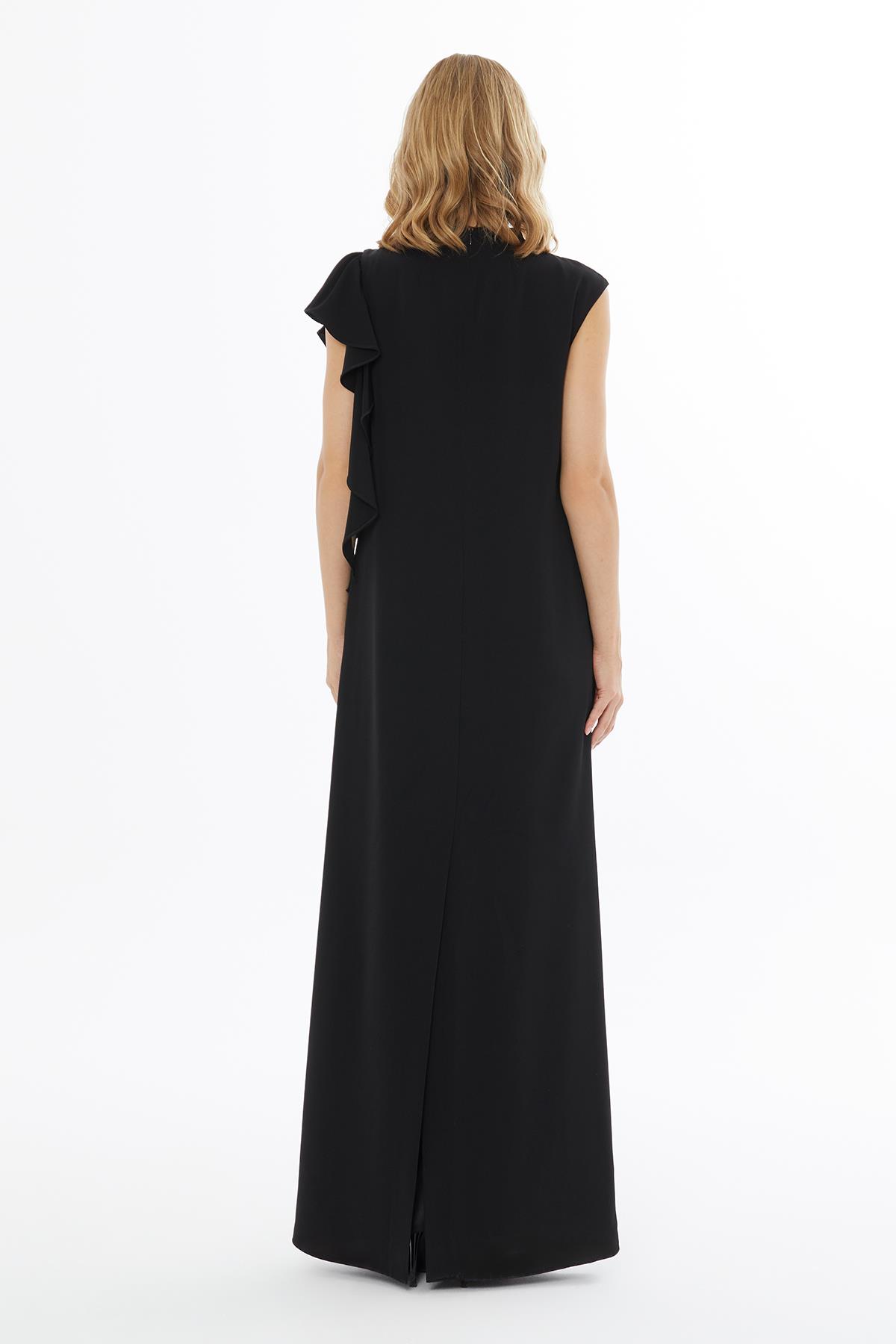 Sleeveless Black Dress with Left Ruffle Detail and Back Slit (M5KM5M0271)