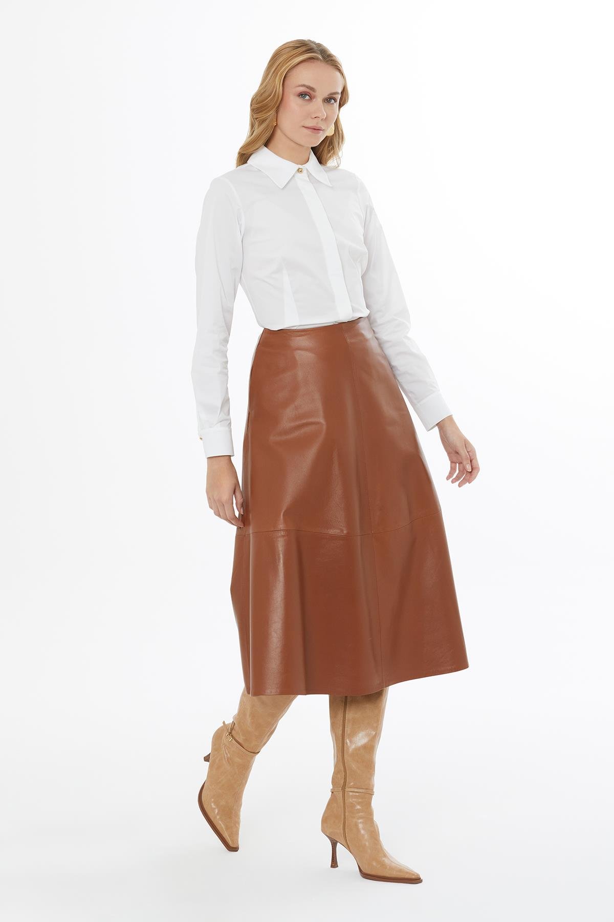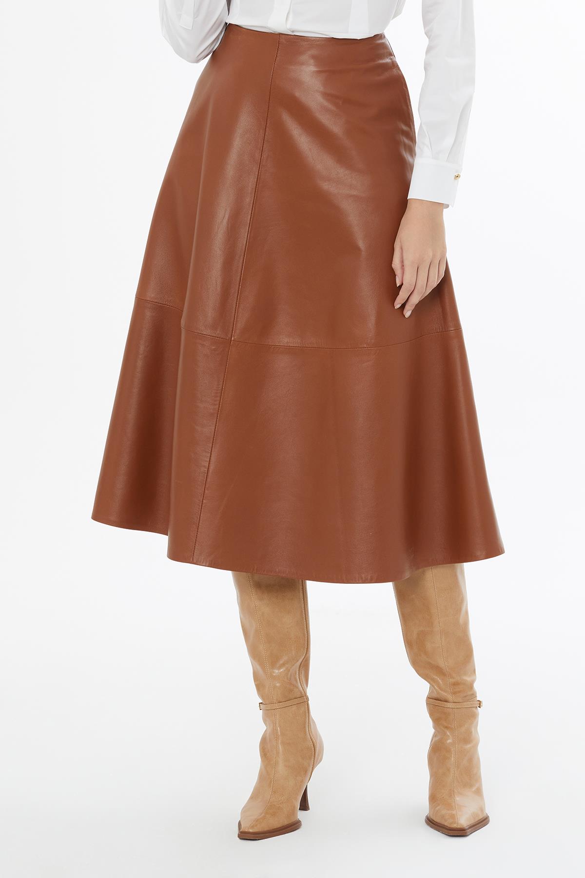 Tan Leather Flared Skirt with Back Zipper Closure (M5KM3M0421)
