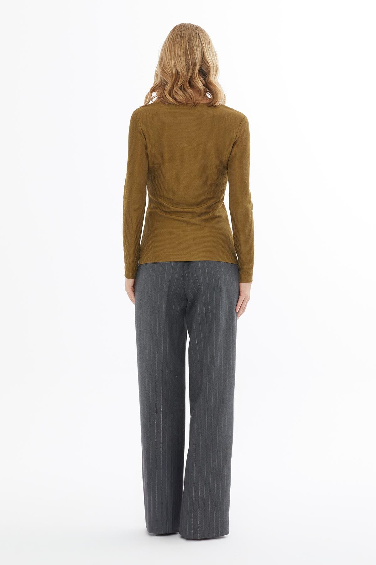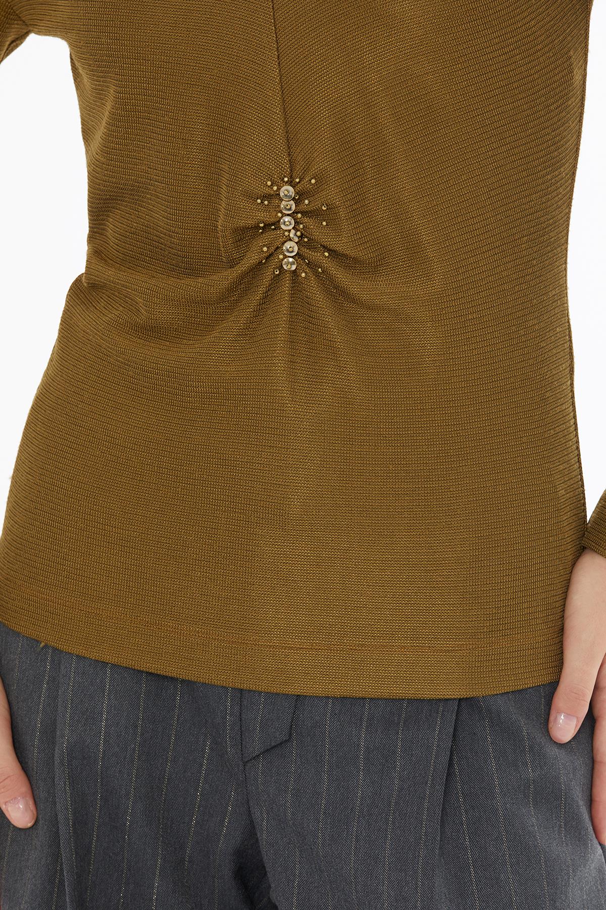 V-Neck Khaki Blouse with Stone Embellishment Detail (M5KM2M1071)