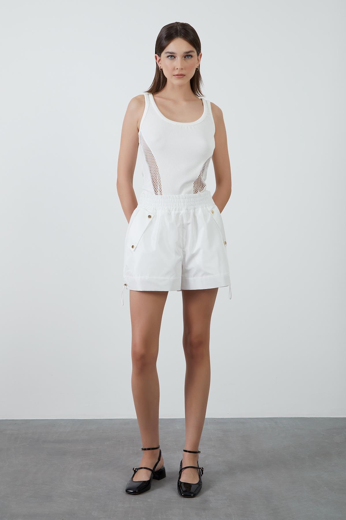 Velcro Detaıl Drawstrıng Ecru Shorts (M4YM1J0281)