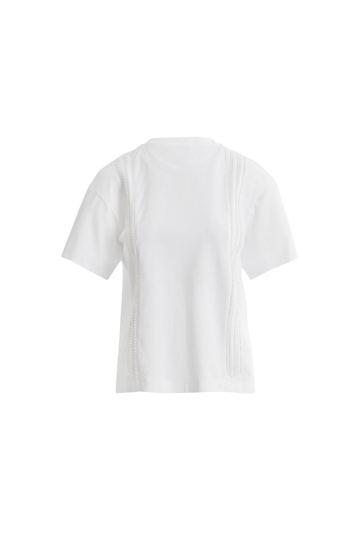 White Short-Sleeve T-Shirt with Front Trim Detail (M5KM2M1521)