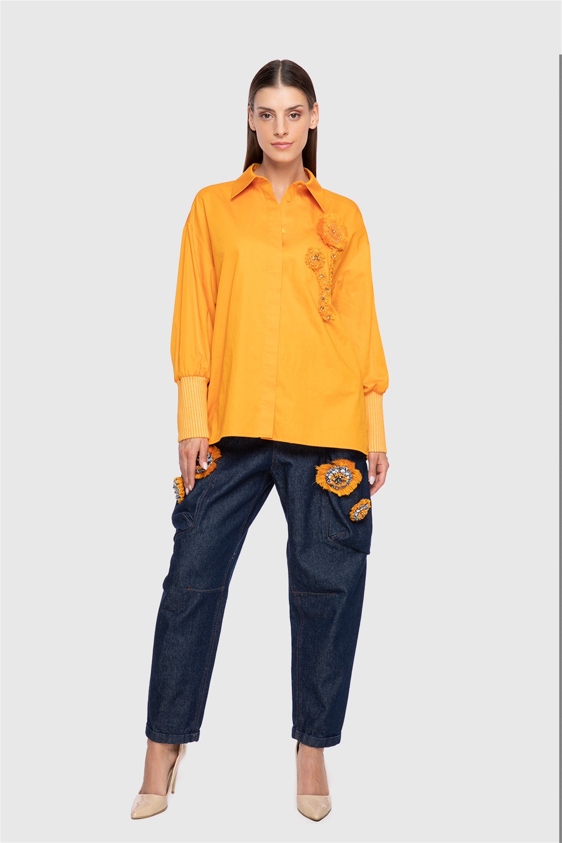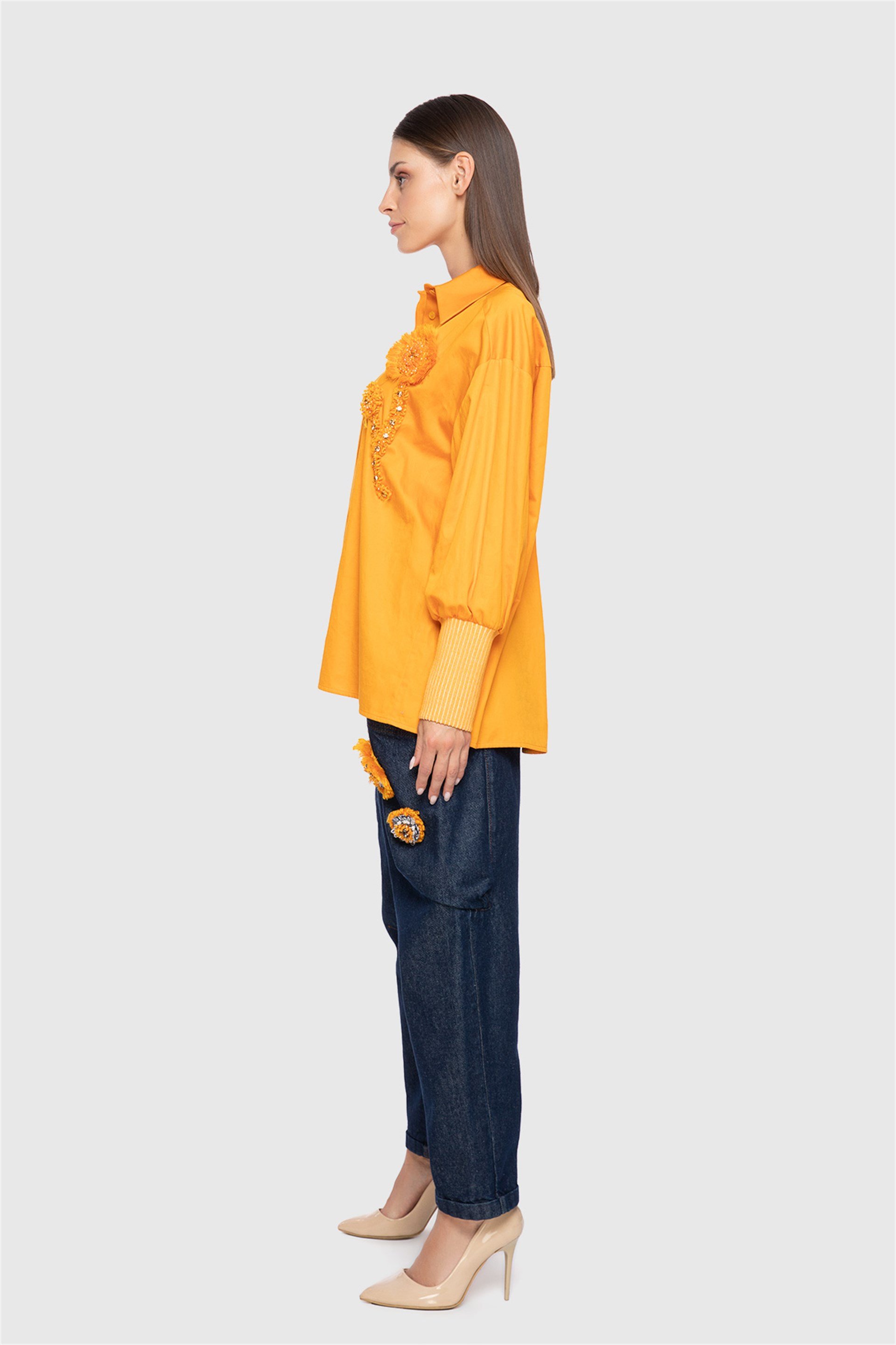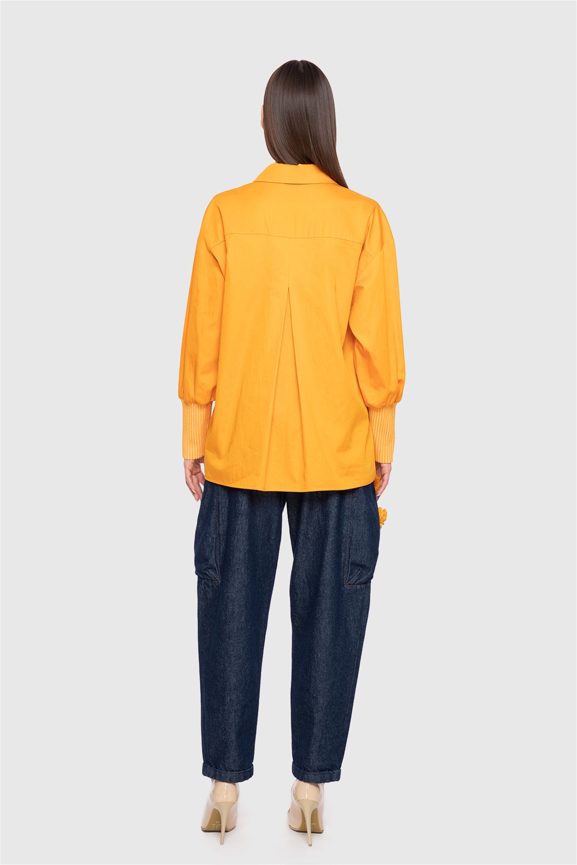 With Embroidery And Embroidered Sleeves Knitted Oversized Black Shirt (M2KM2G0041)
