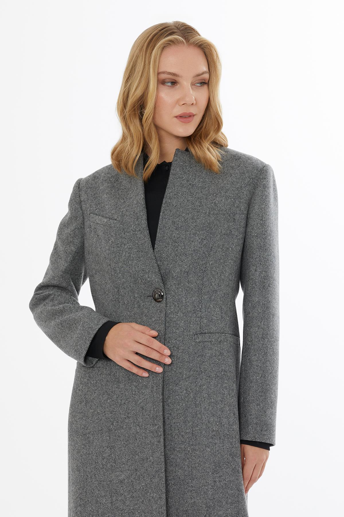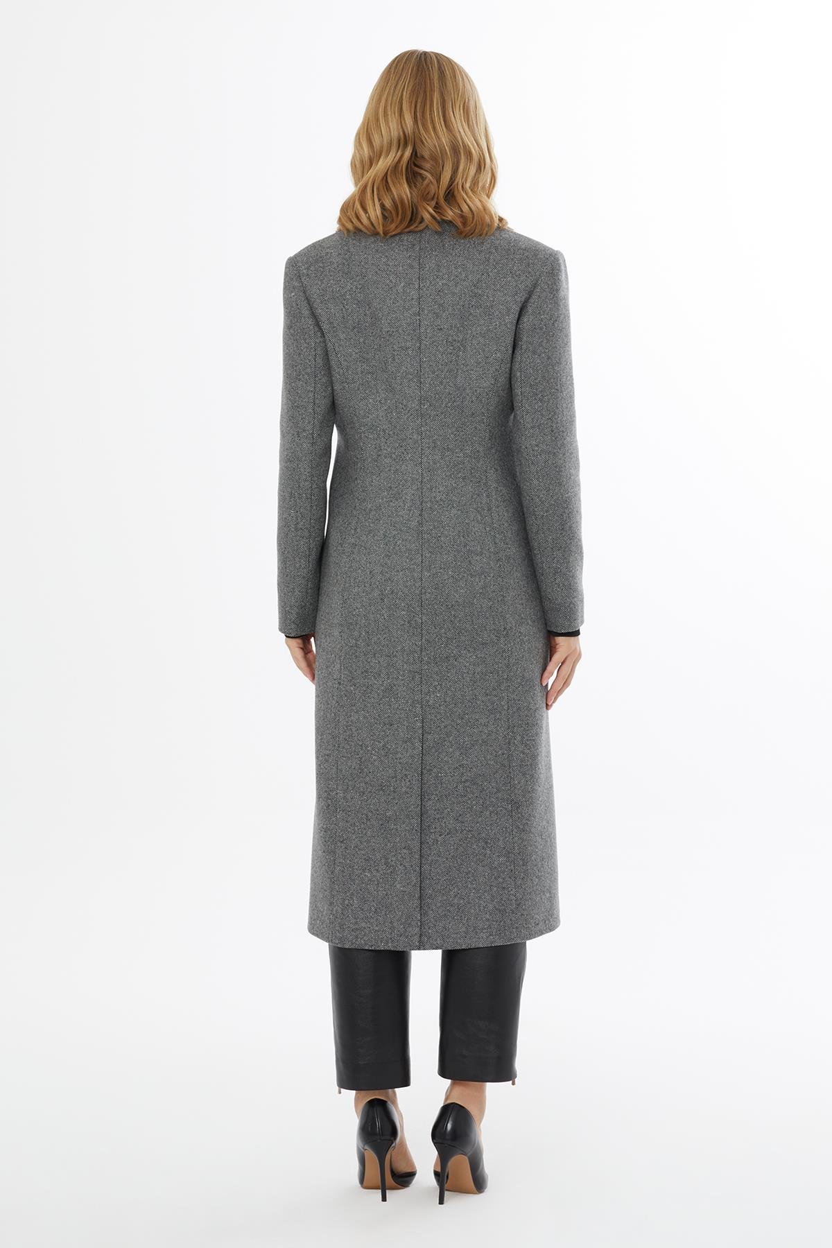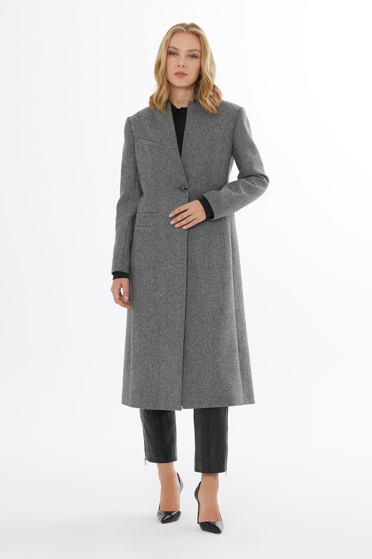 Hakim Yaka Düğme Detaylı Tam Kalıp Gri Kaban (M5KM4M2161)