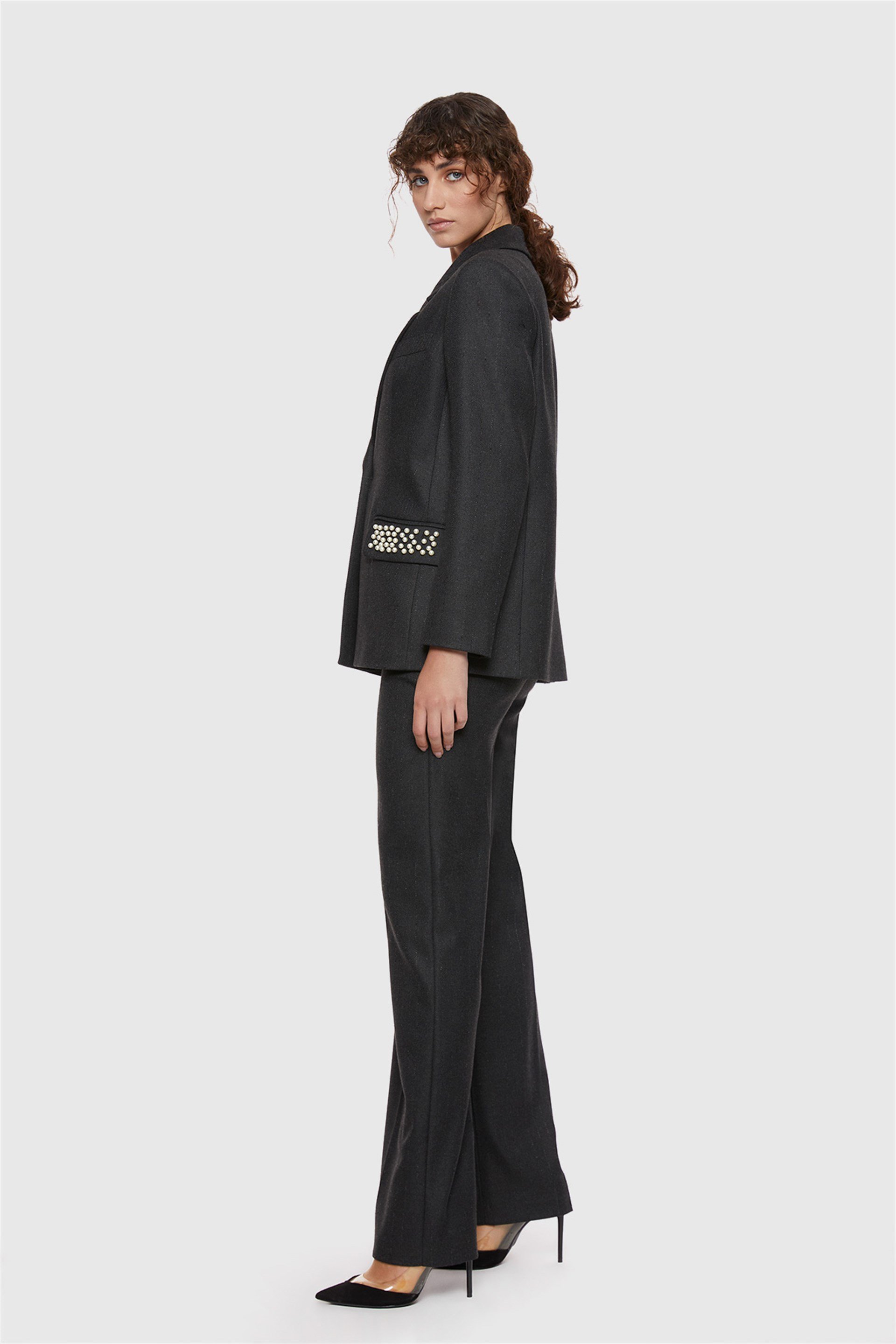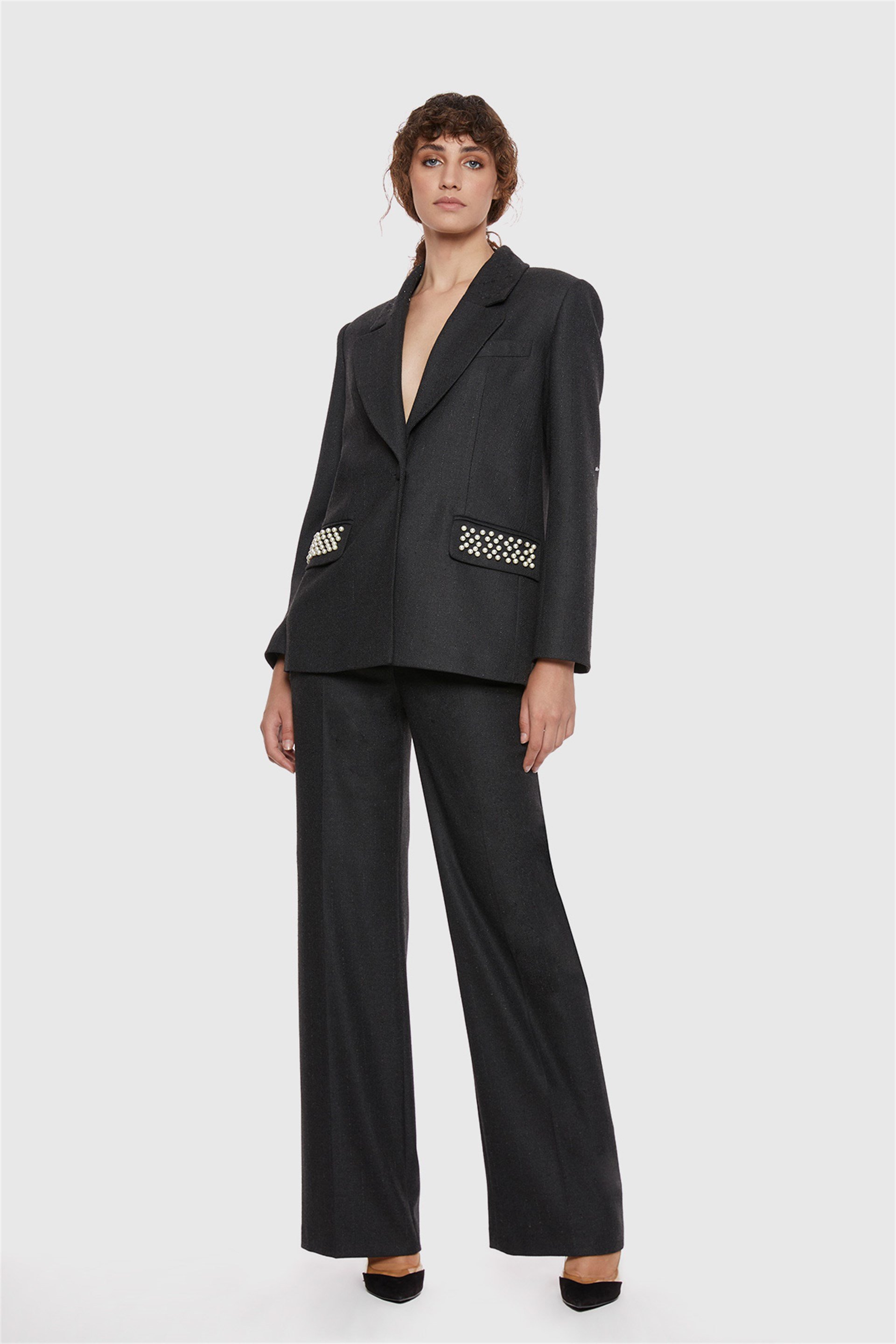 İnci Çakımı Detaylı Bleazer Ceketli Ve Palazzo Pantolonlu Takım (M2KMTKG323)