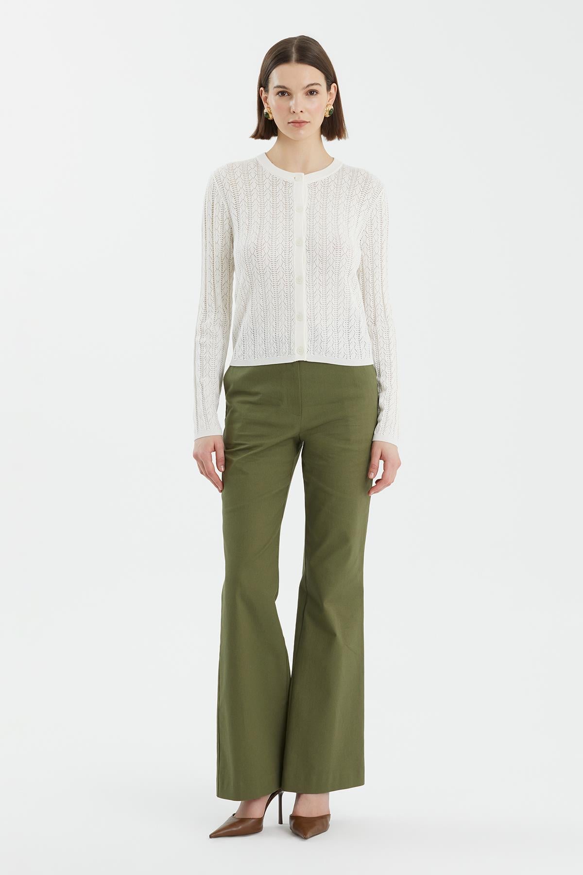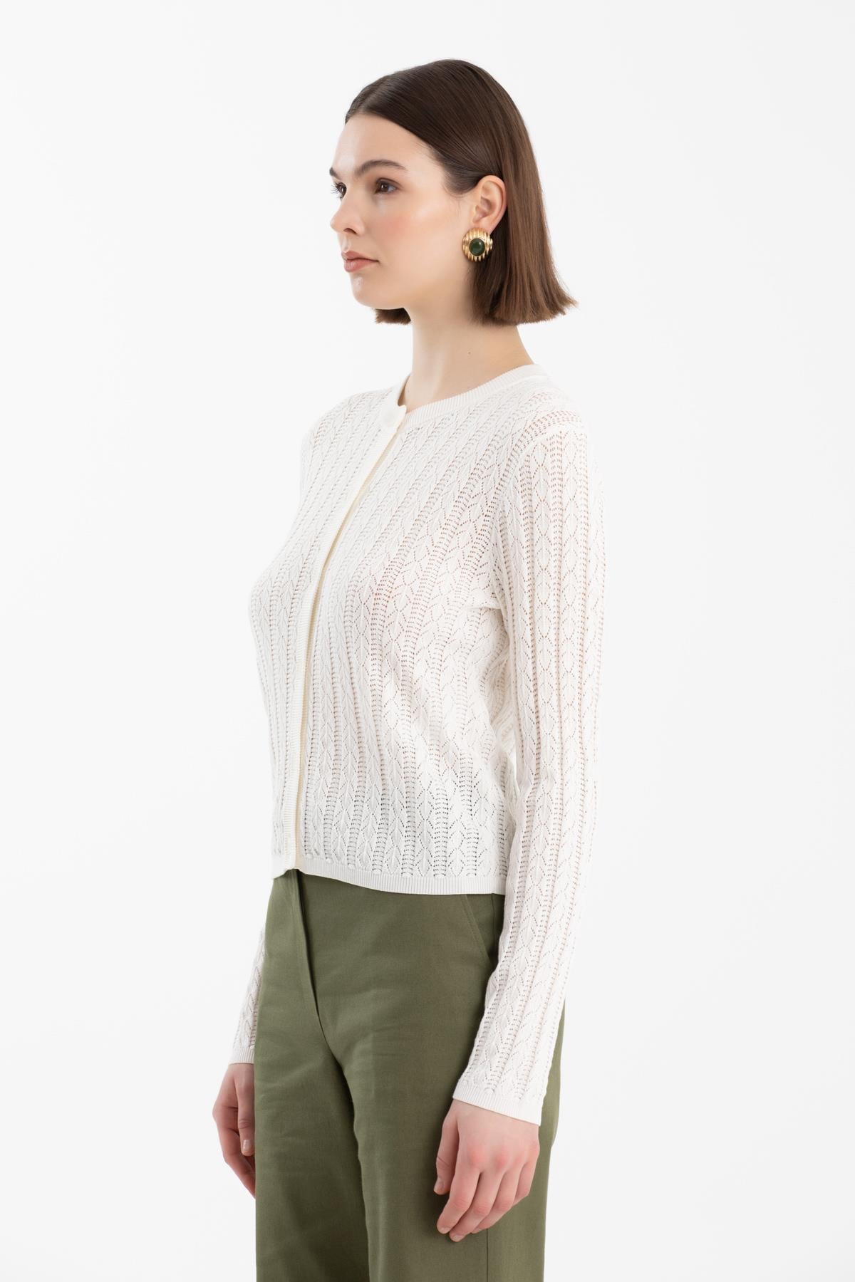 İpek Karışımlı Düğmeli Beyaz Triko (M6YM2N3081)