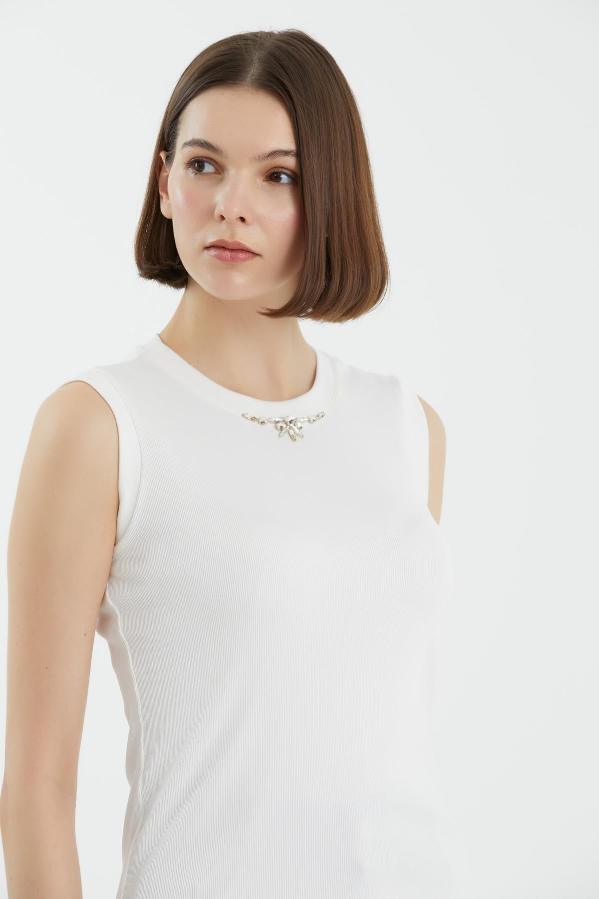 İşleme Detaylı Ekru Atlet (M6YMWN0261)
