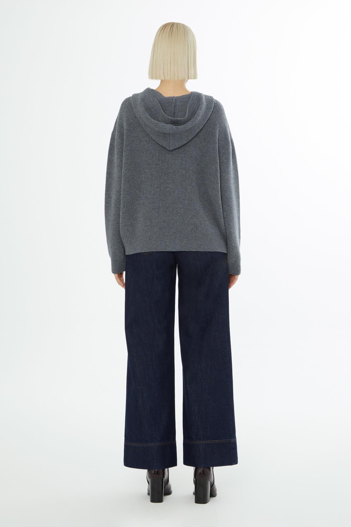 Kapüşon Yaka Fermuar Kapamalı Uzun Kollu Gri Hırka (M5KM4M3051)