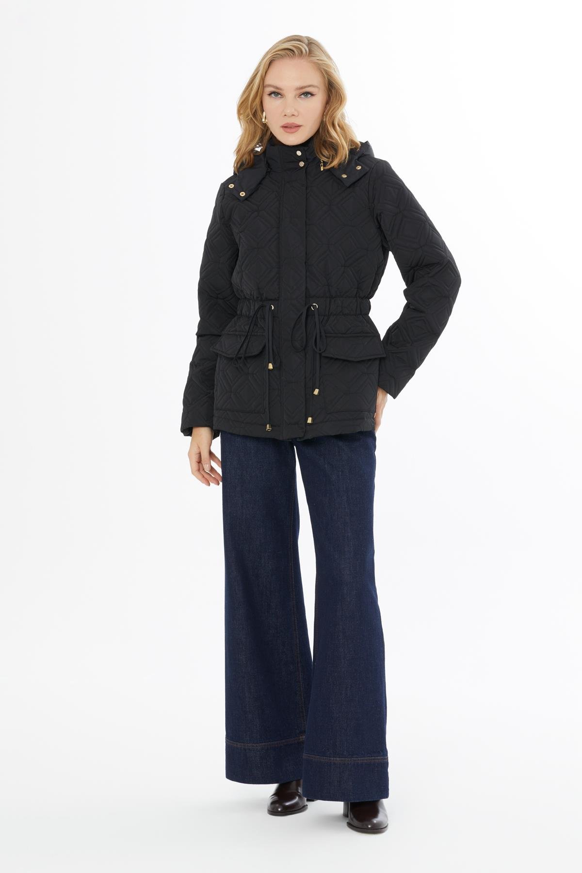Kapüşon Yakalı Belden Kordonlu Siyah Mont (M5KMYM3101)