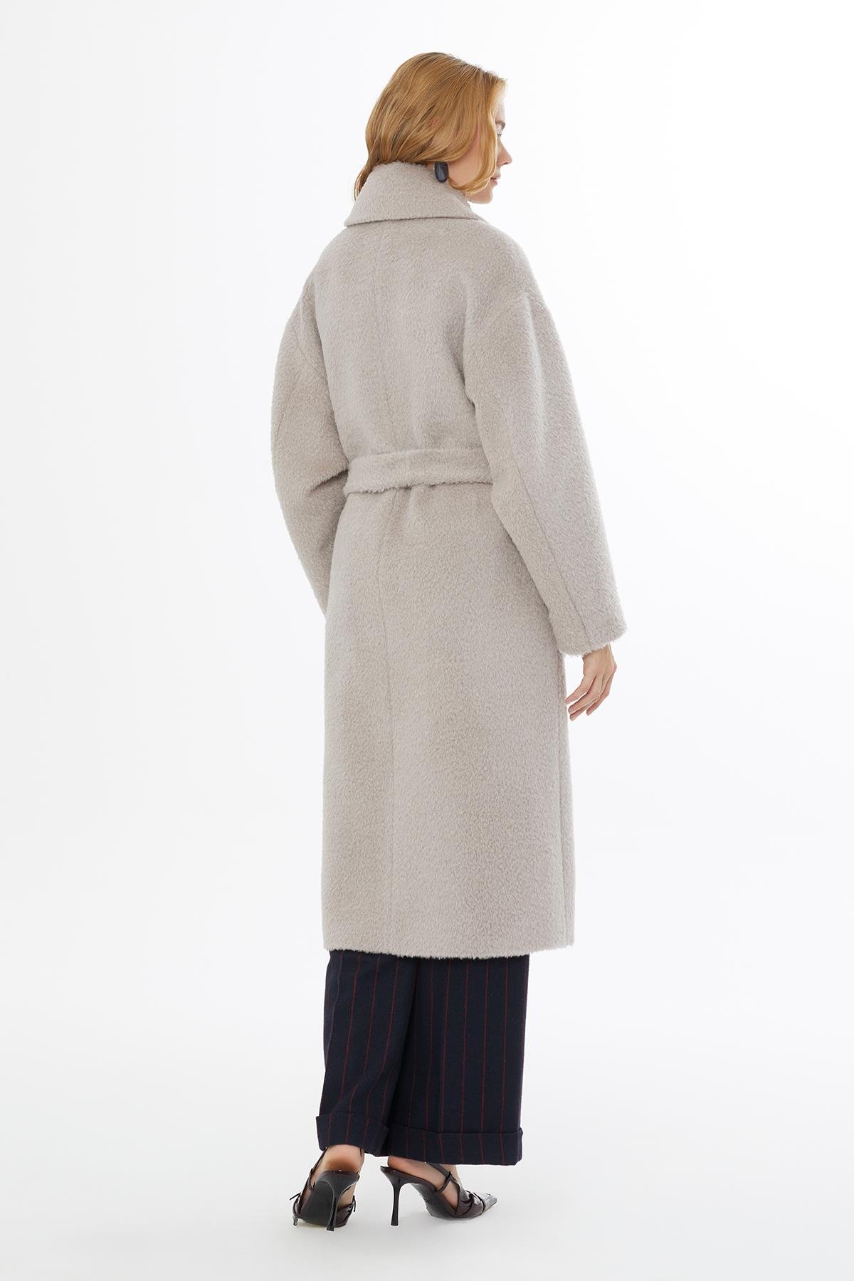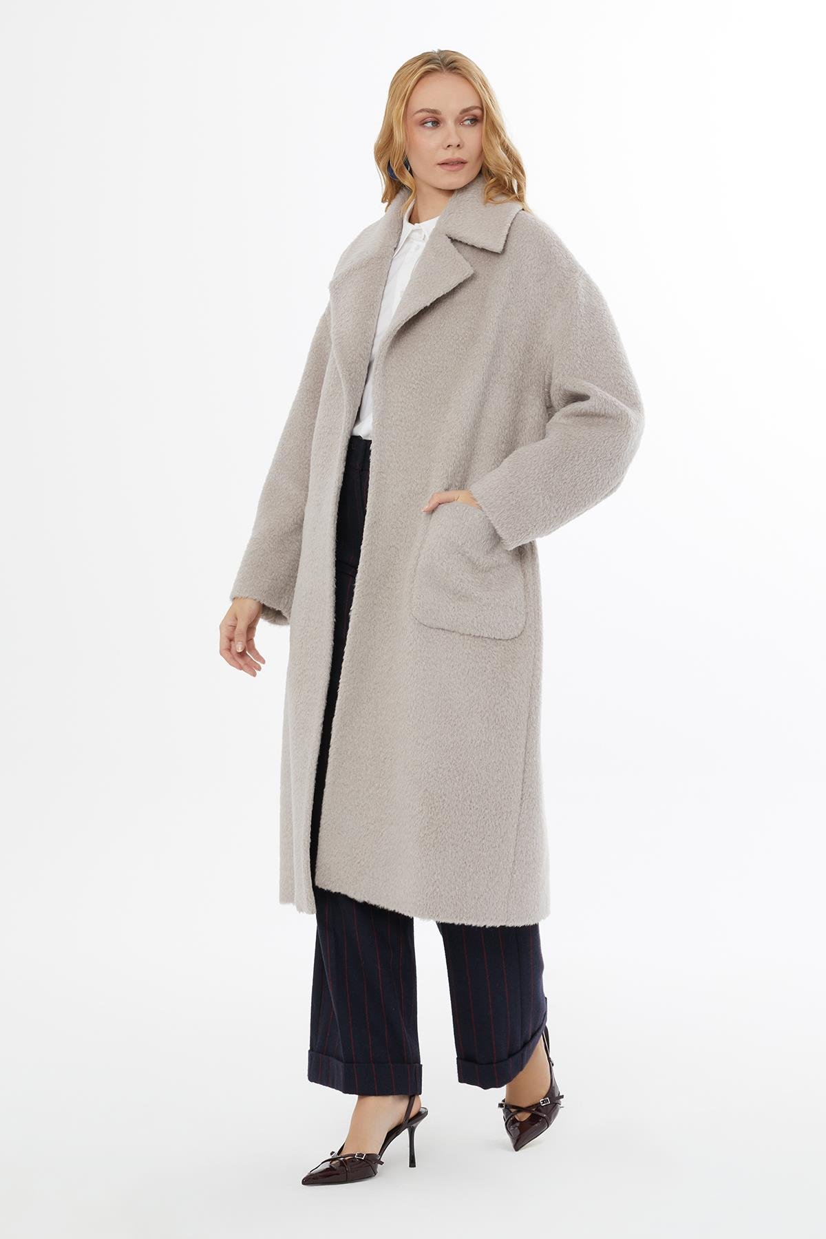 Kemer Kapamalı Aplike Cepli Erkek Yaka Vizon Kaban (M5KM4M2211)