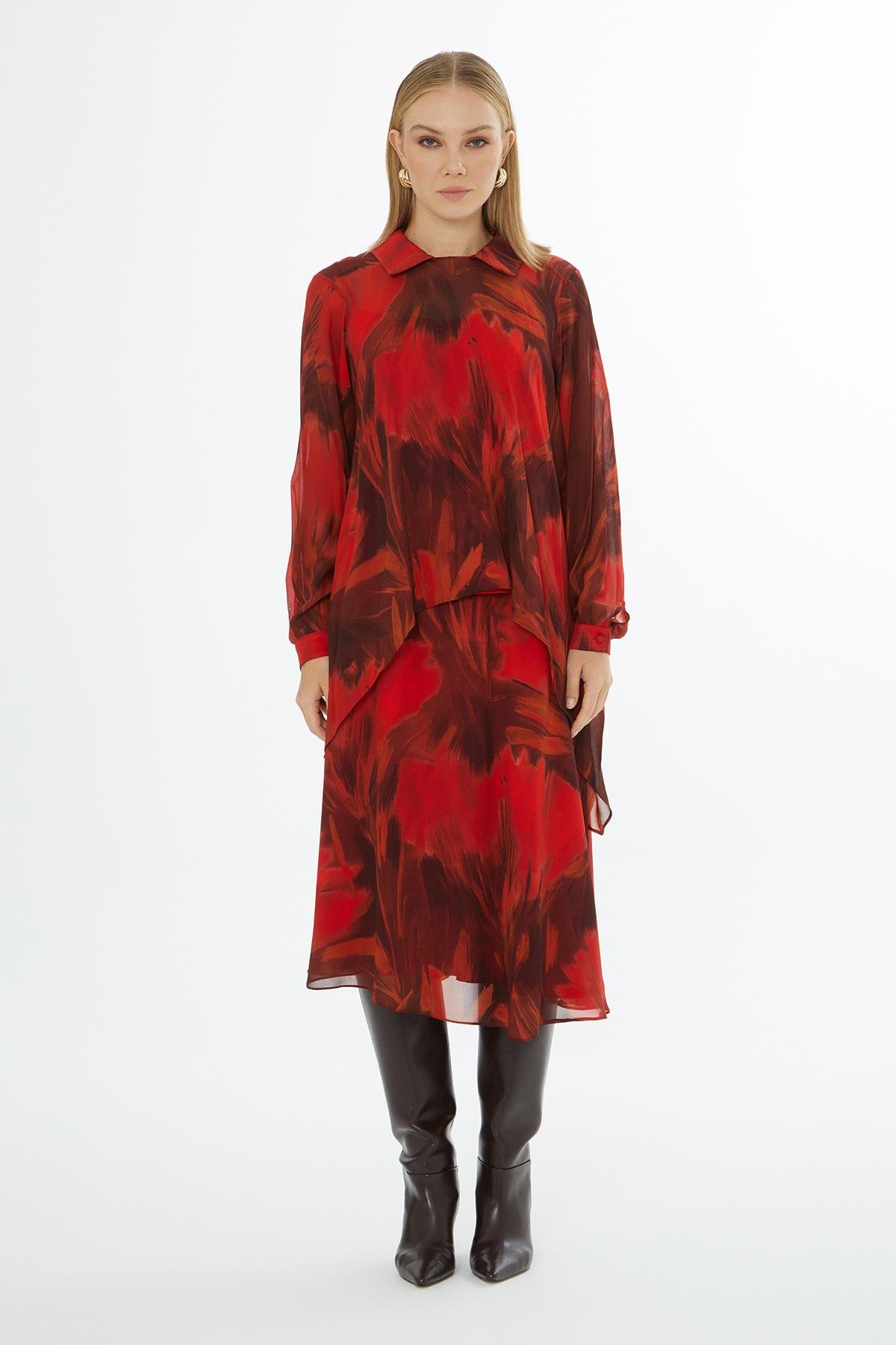 Kırmızı Siyah Geçişli Katlı Bluz (M5KM2M1161)