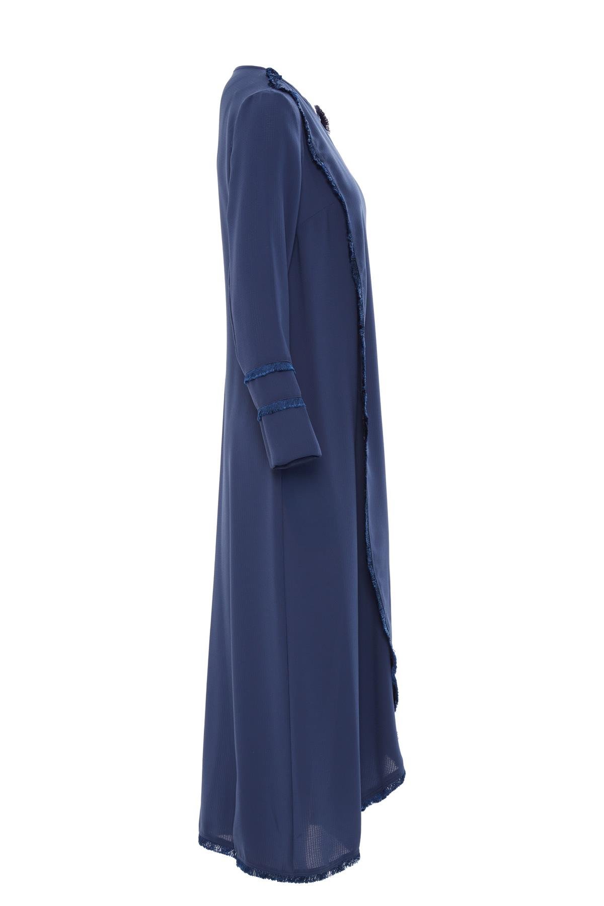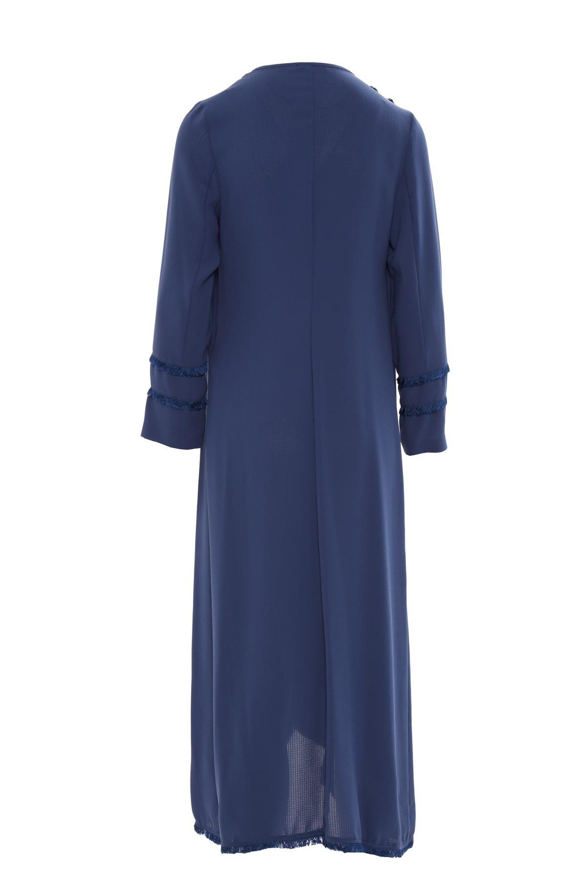 Kolları Şeritli Mavi Uzun Elbise (M18YYW0081)