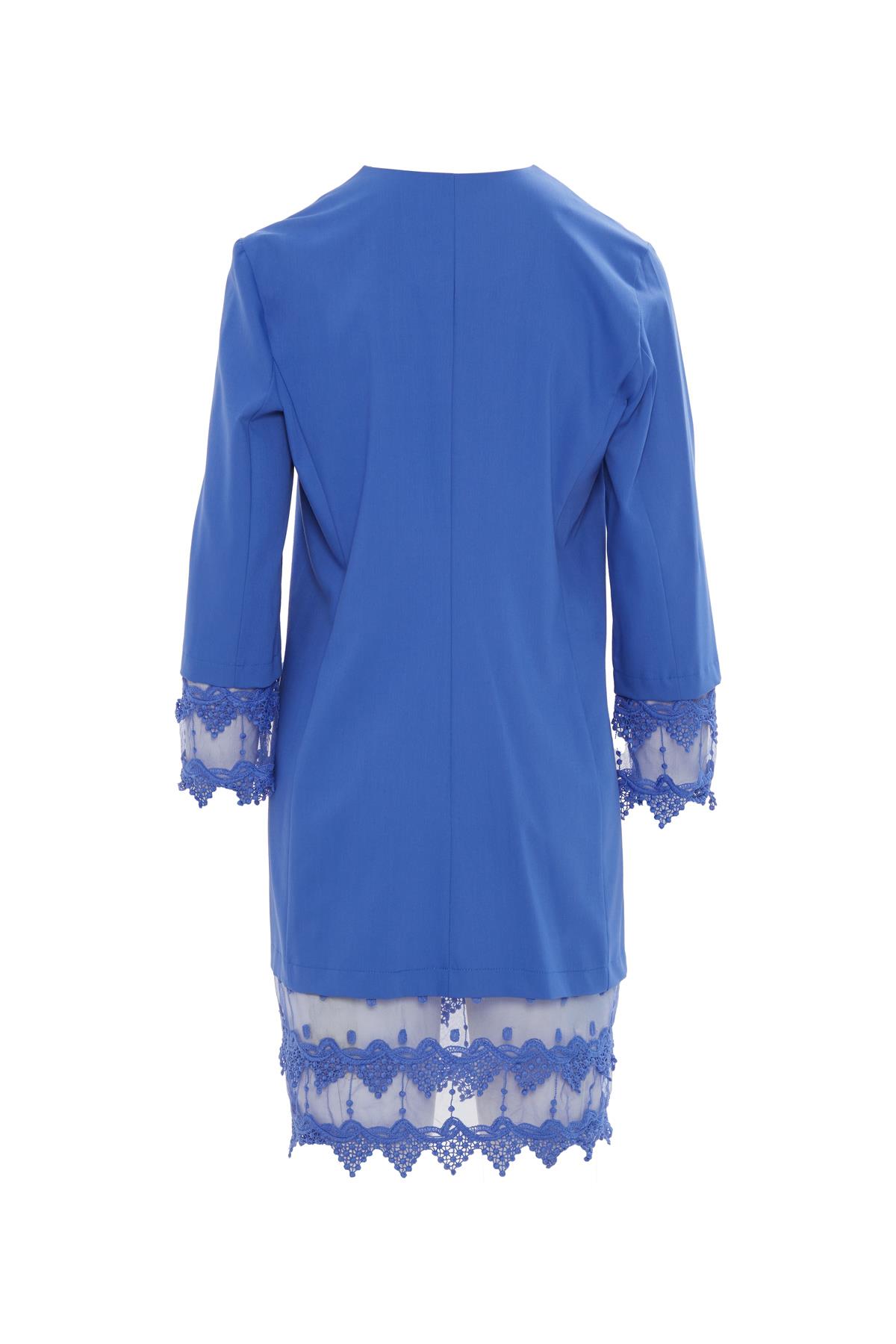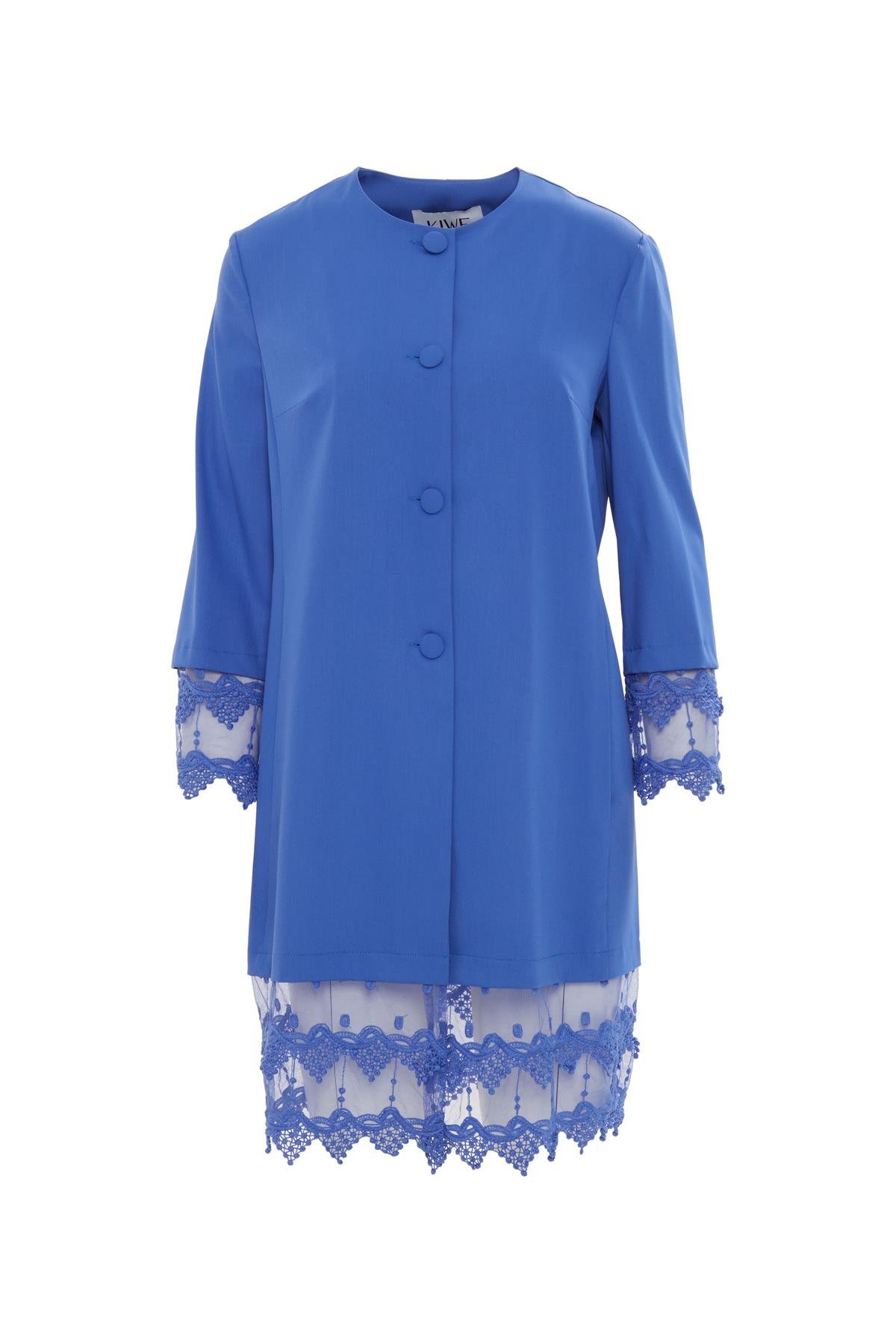 Kolları Tül Detaylı Yuvarlak Yaka Mavi Ceket (M18YYW0111)