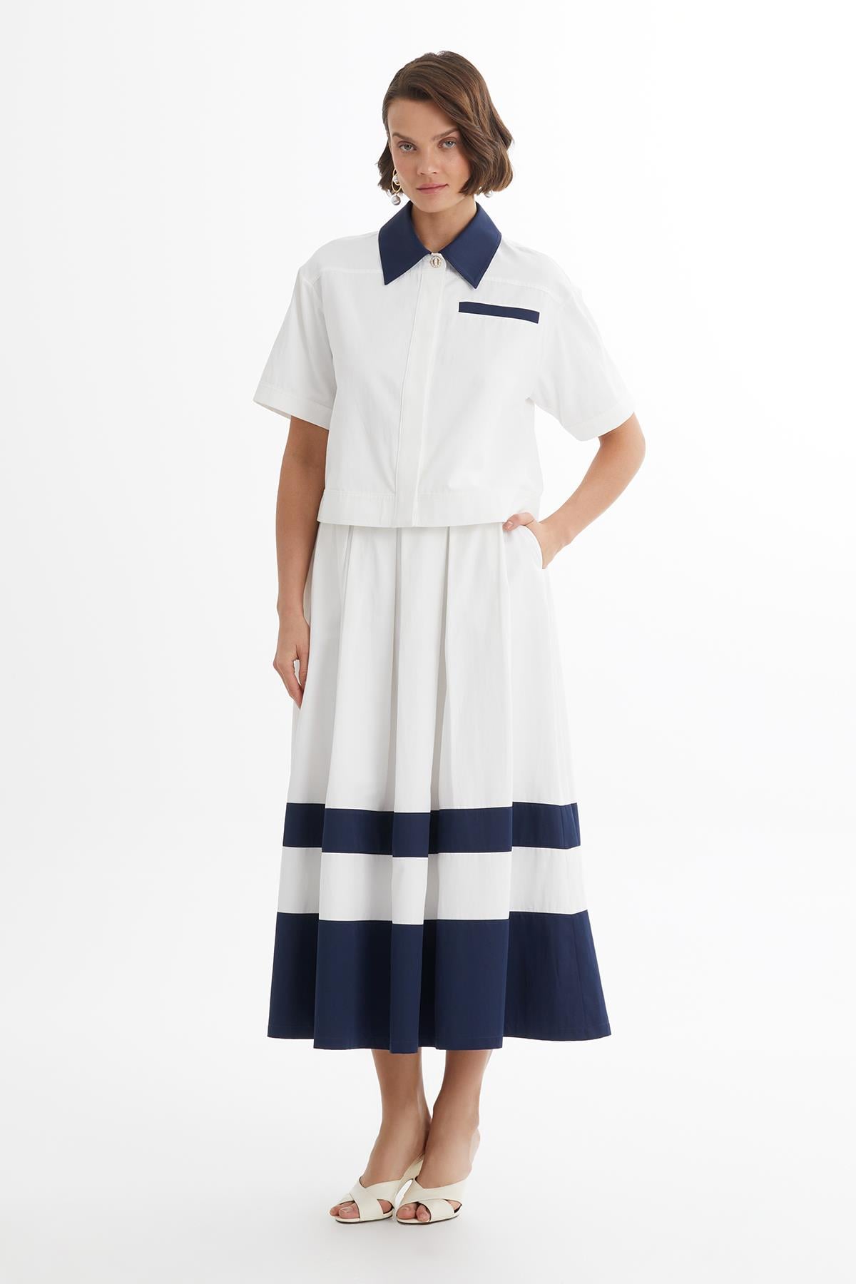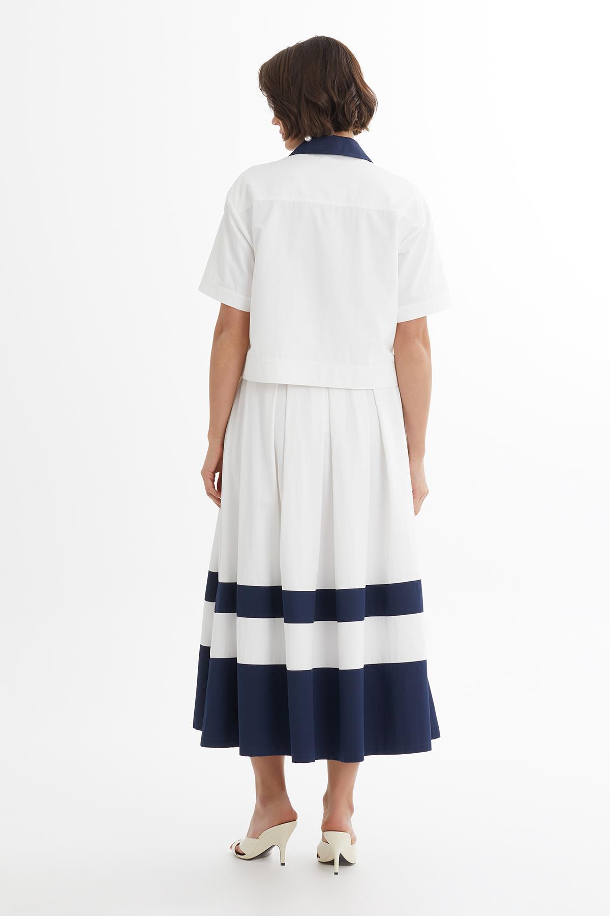Kontrast Şeritli Ekru Midi Takım (M6YMTKN003)