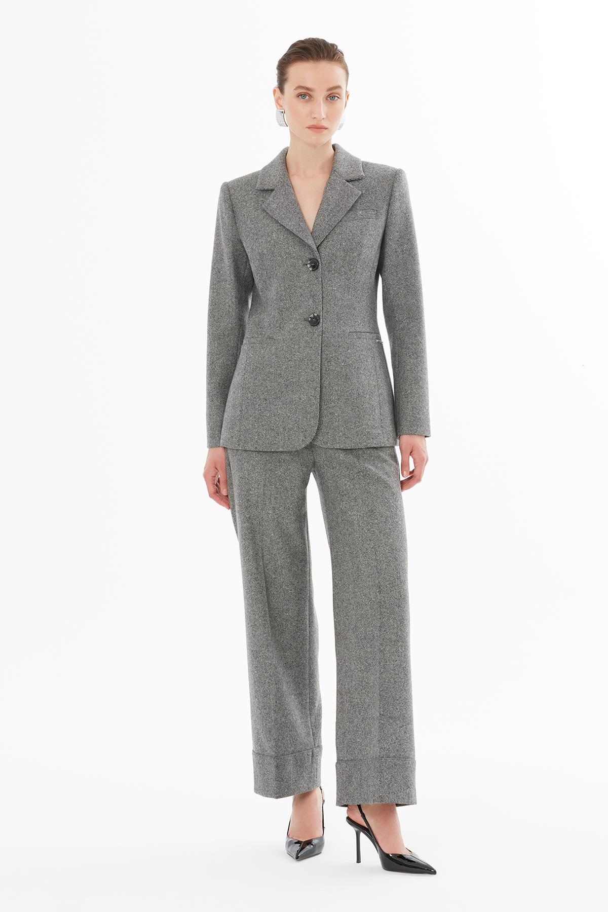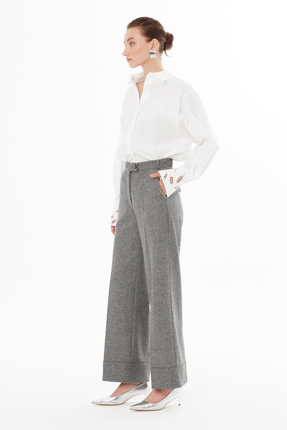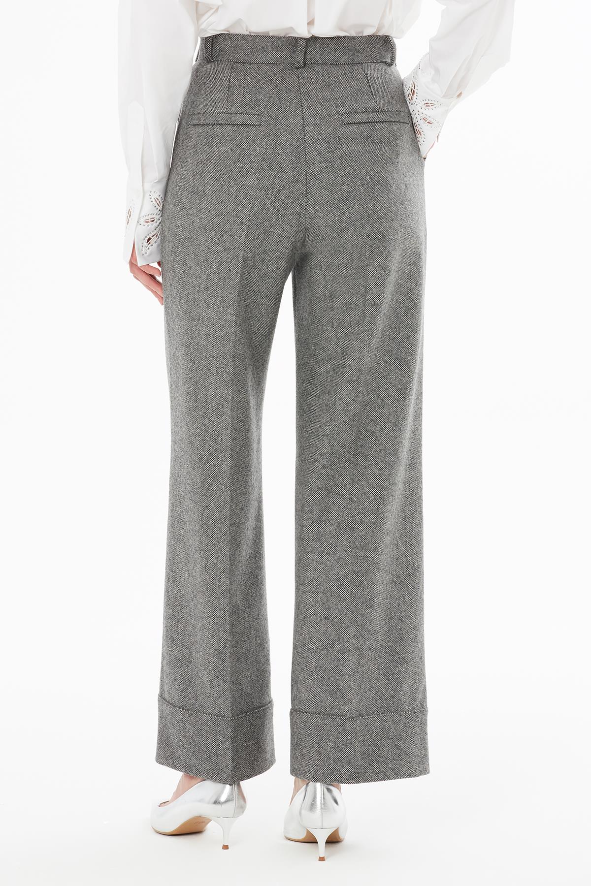 Yüksek Bel Yün Karışımlı Gri Katlamalı Pantolon (M5KM1M0951)