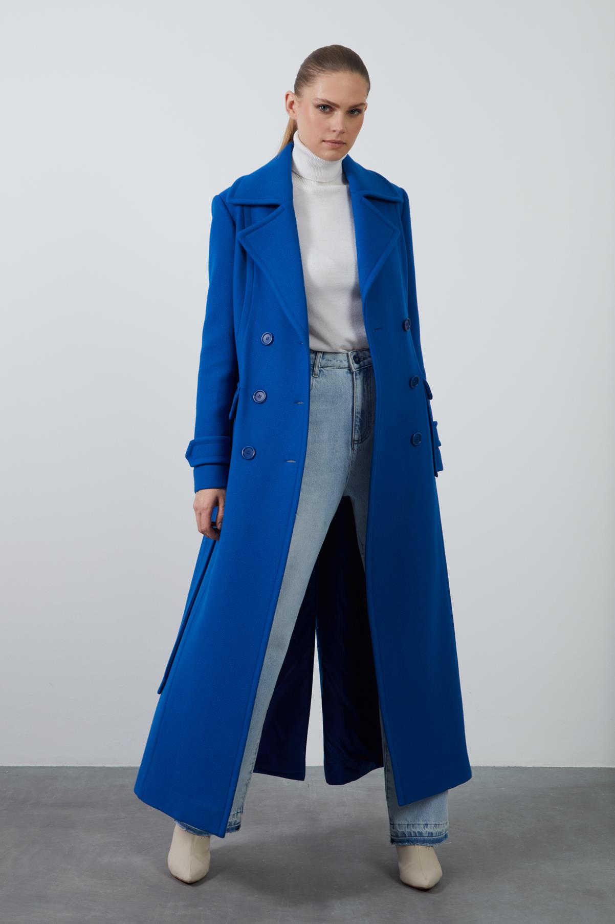 Seyyar Kuşaklı Geniş Cep Uzun Mavi Kaban (M3KM4I2291)