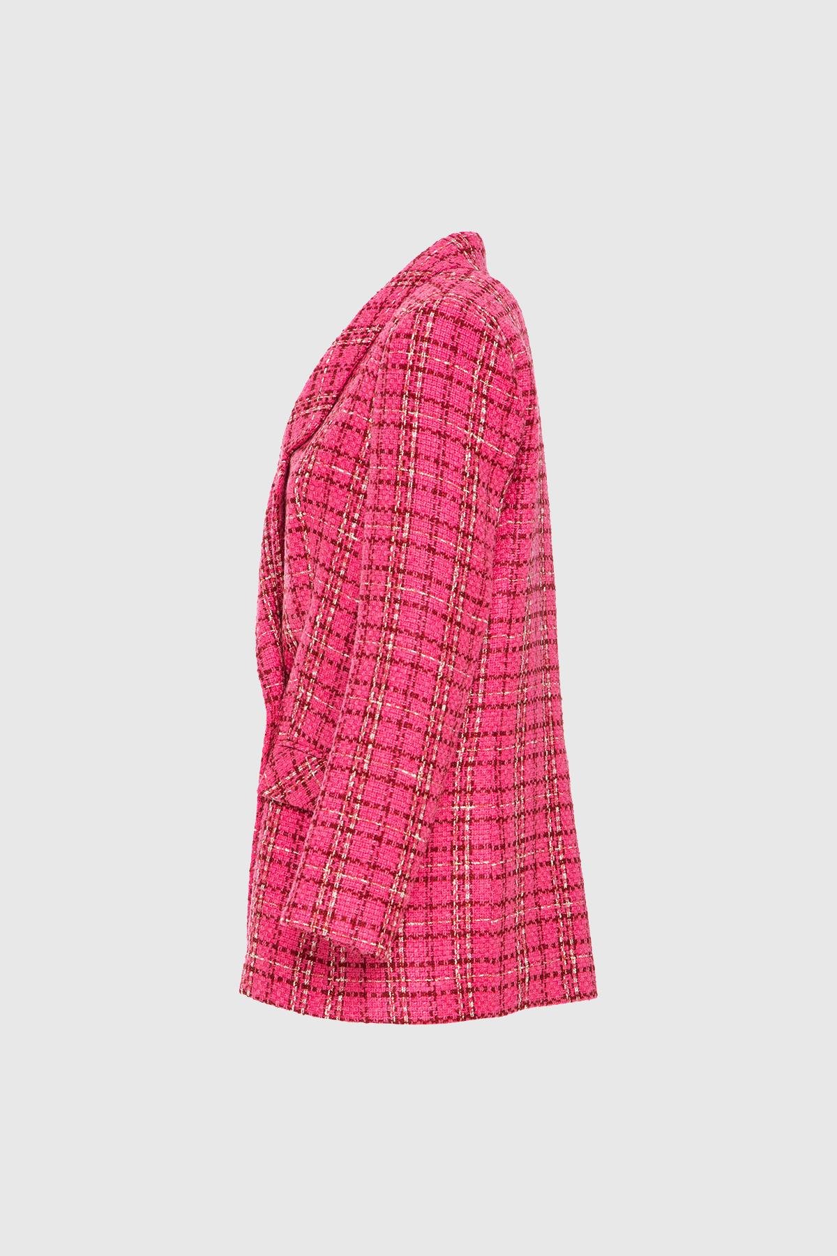 Tüvit Kurvaze Gold Düğmeli Pembe Ceket (M2KMYG3001)