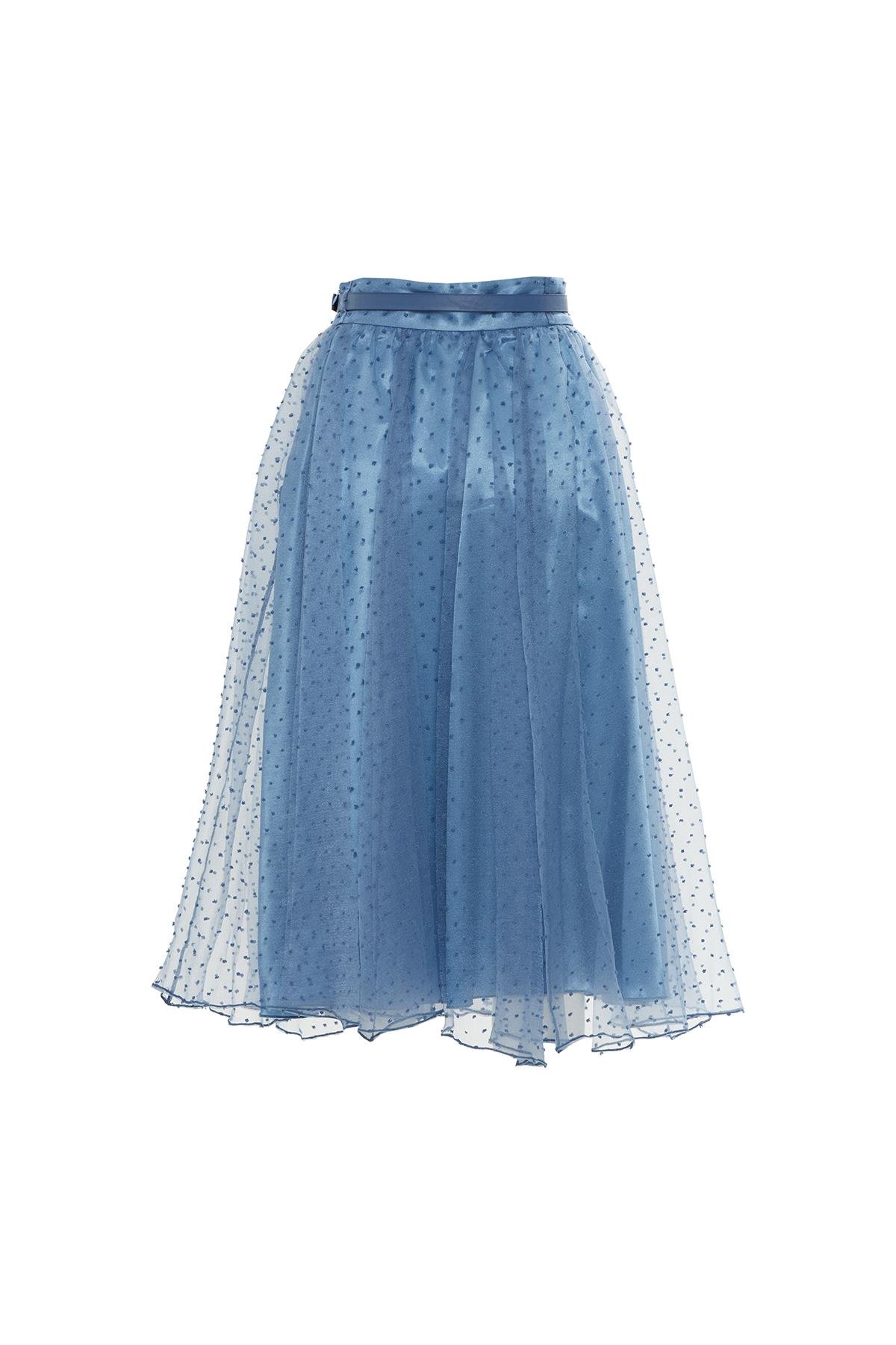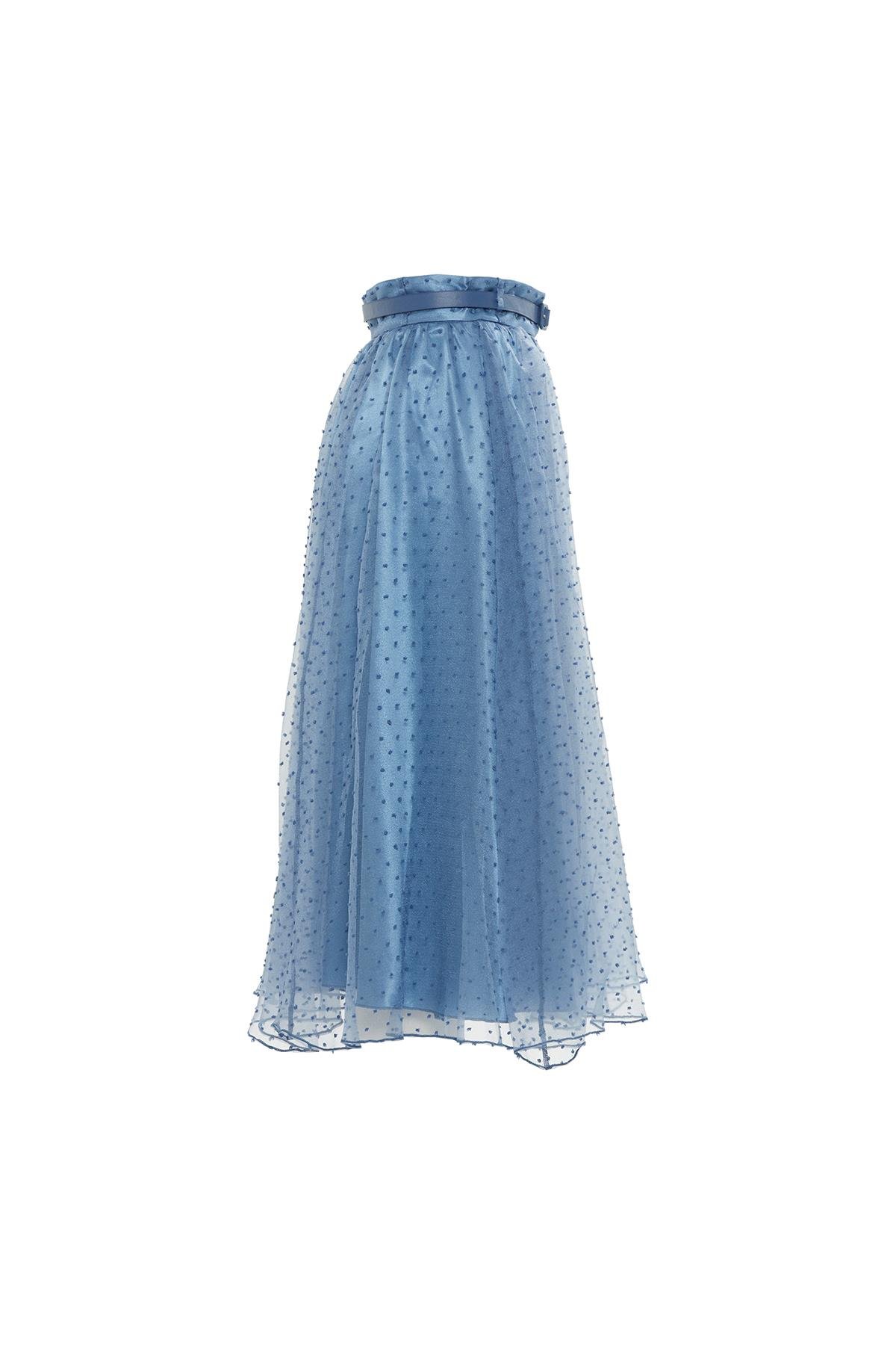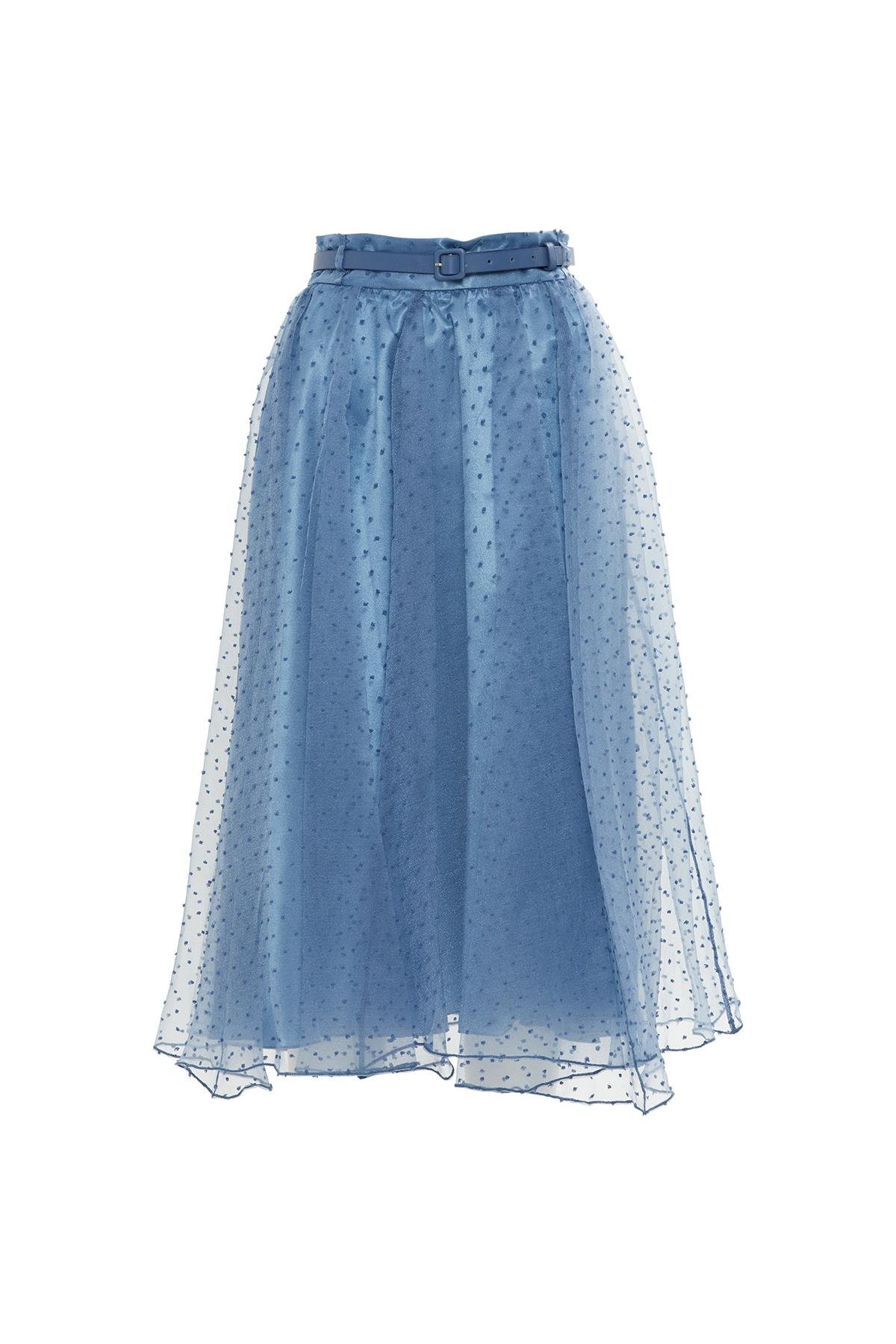 Organze Beli Kemerli Midi Boy Beyaz Kloş Etek (M1YMXD0011)