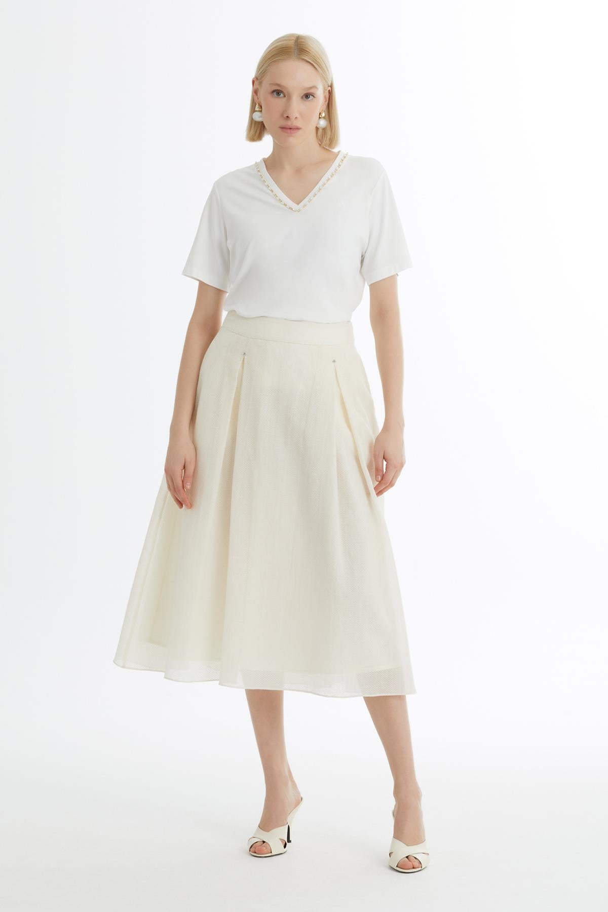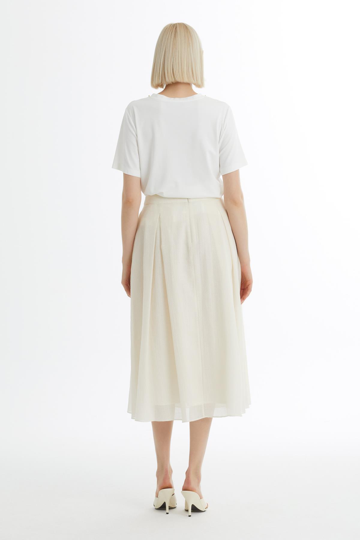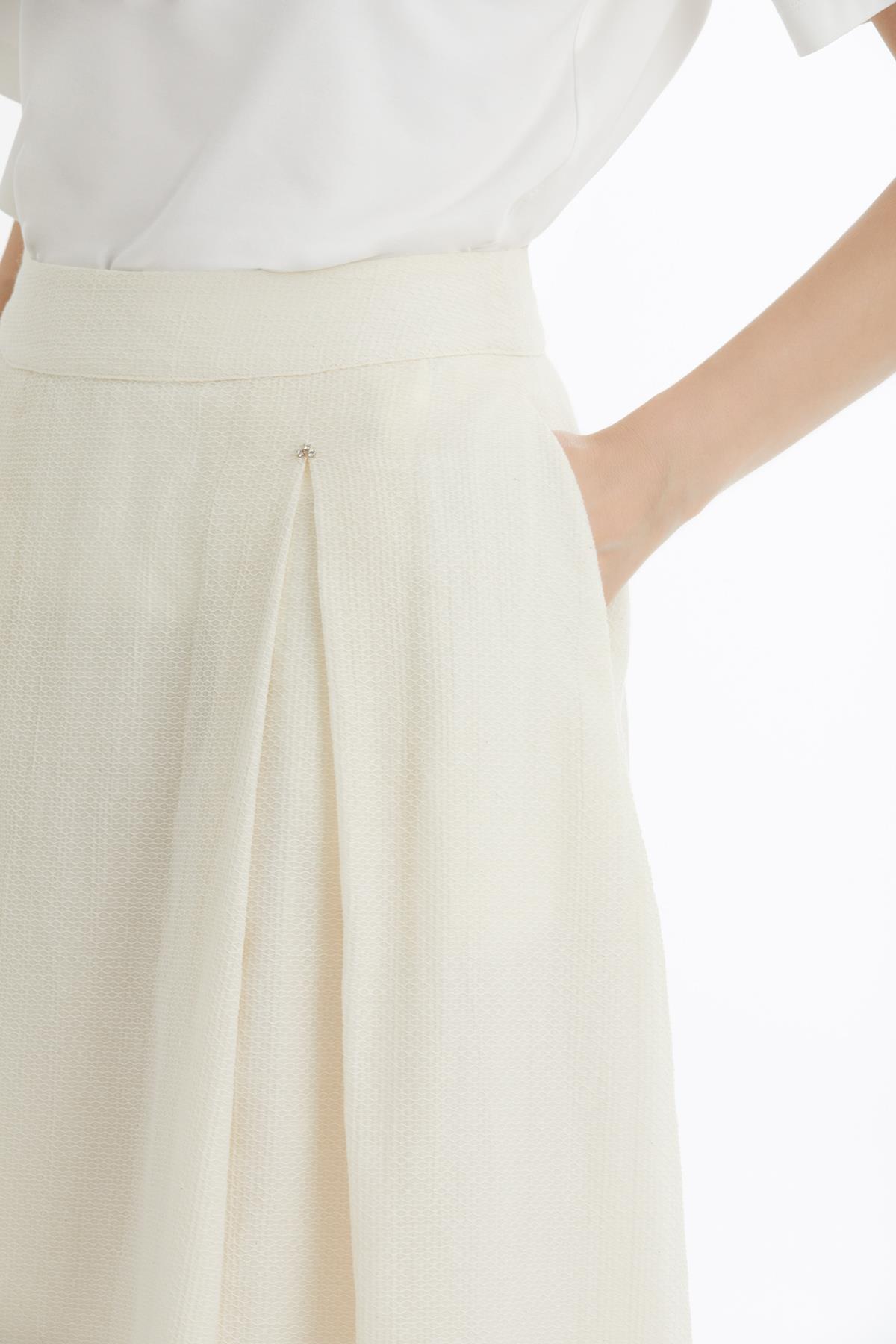 Pileli İşlemeli Ekru Etek (M6YMXN0031)