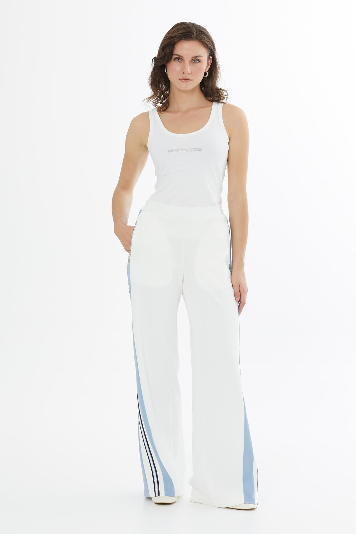 Şerit Detaylı Cepleri Fermuarlı Ekru Eşofman Altı (M6YM1N0201)