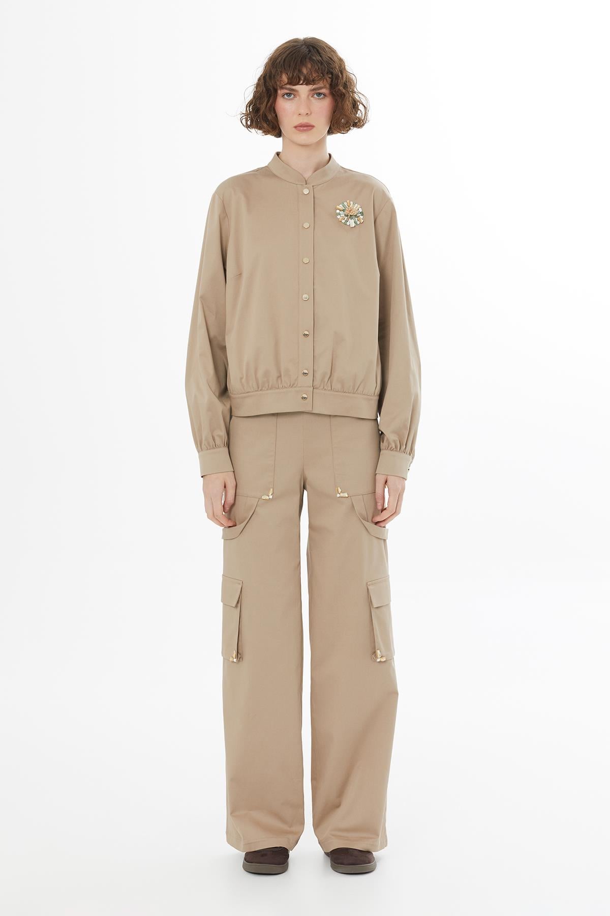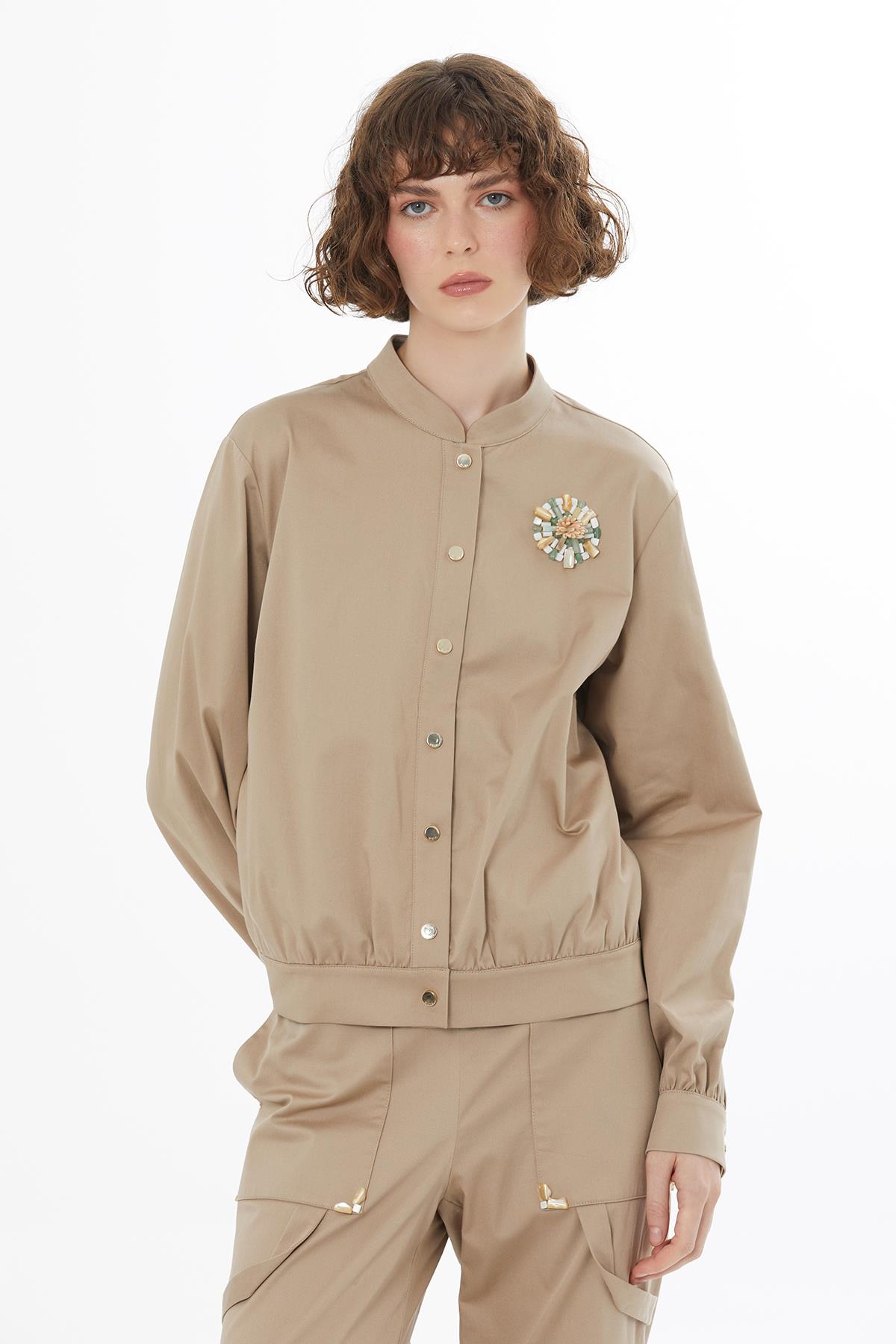 Taş İşlemeli Bej Ceket (M6YM4N0191)