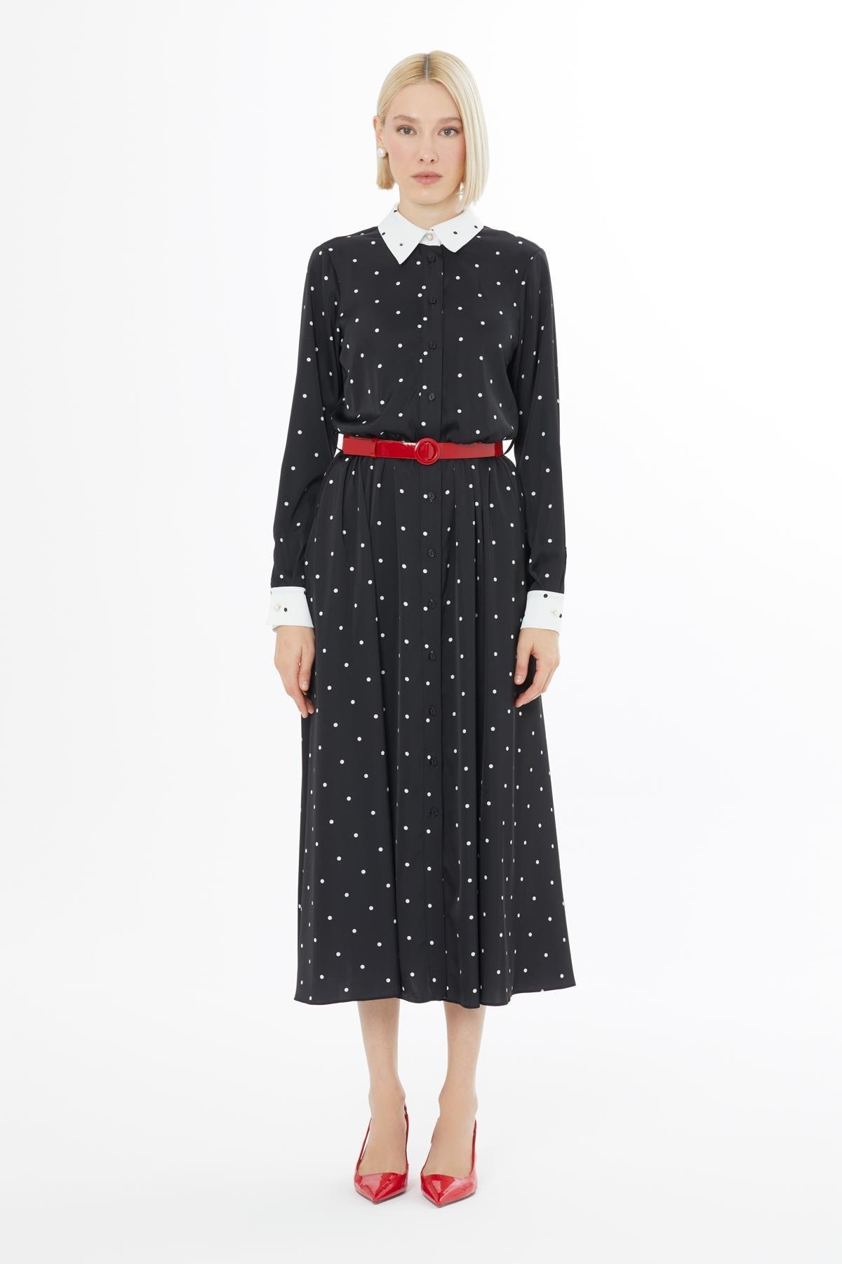 Uzun Kollu Düğmeli Kemerli Uzun Elbise (M5KMZM0341)