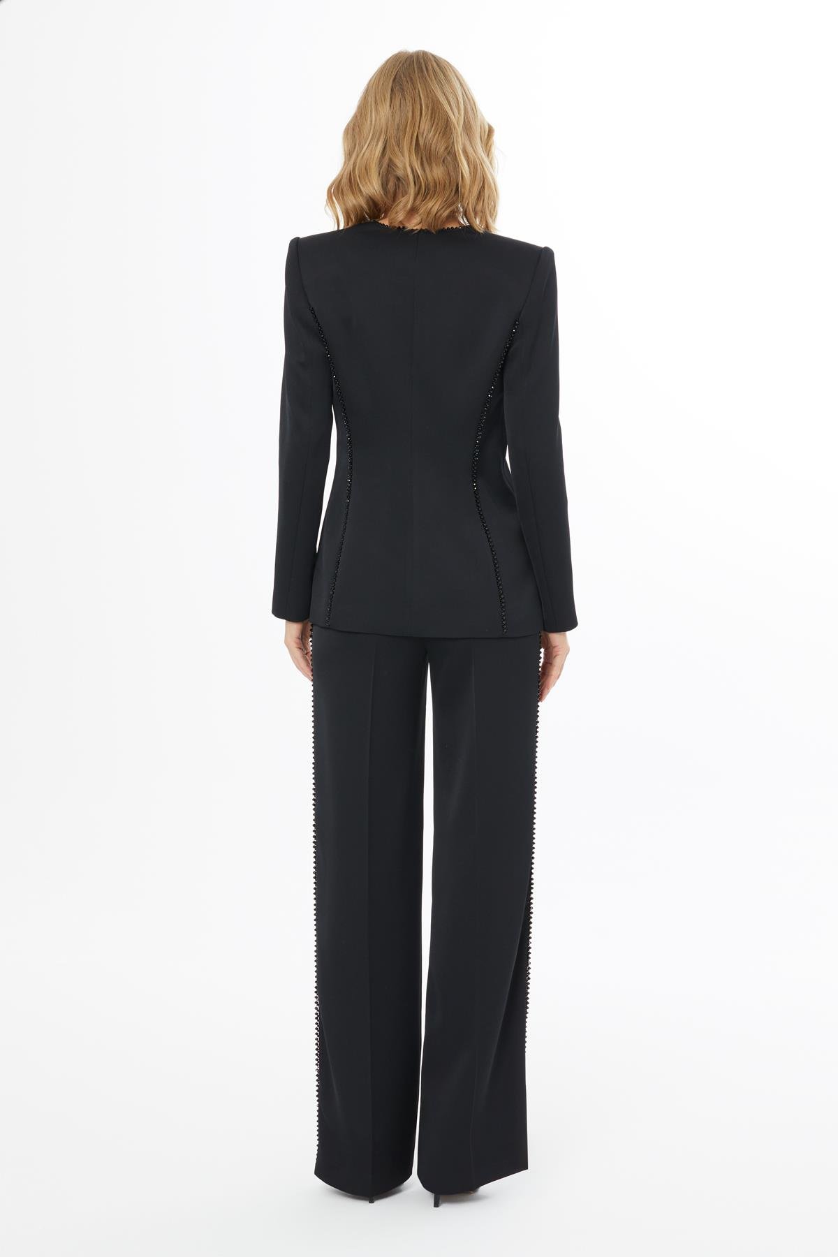 Vatkalı Şerit Aksesuarlı Kadın Siyah Ceket (M5KM4M1701)