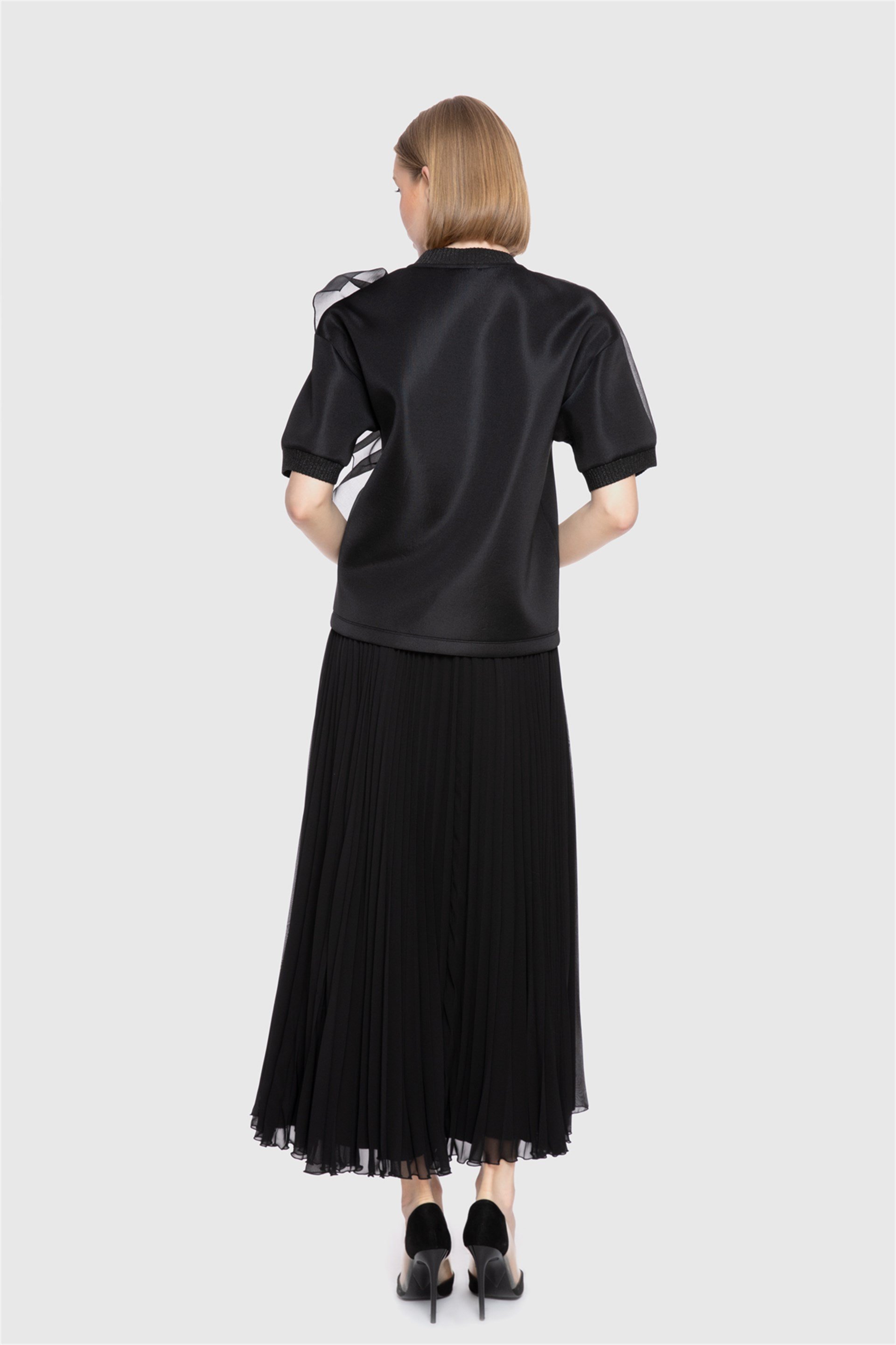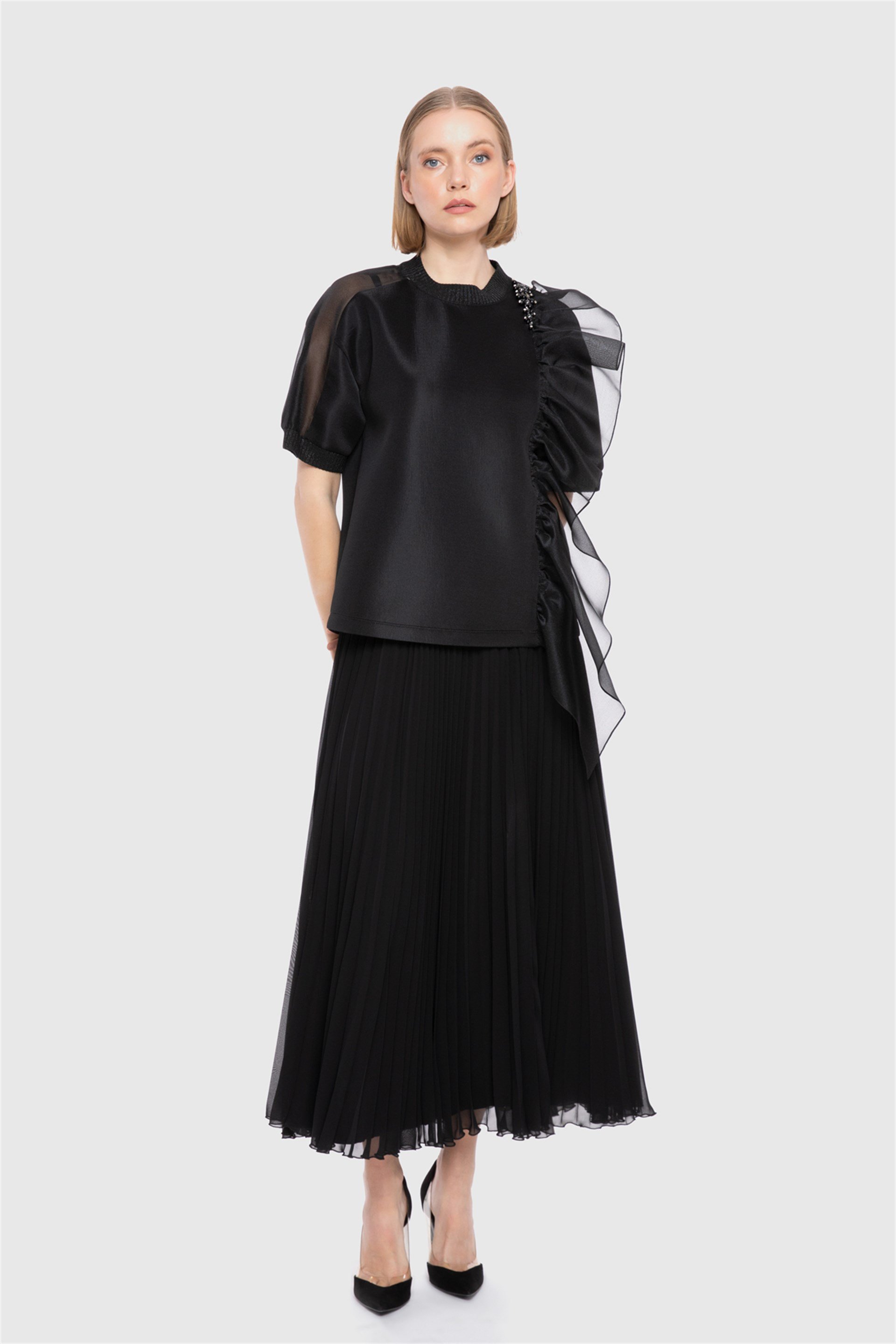 Volan Detaylı İşlemeli Siyah T-Shirt (M2KM2G0031)
