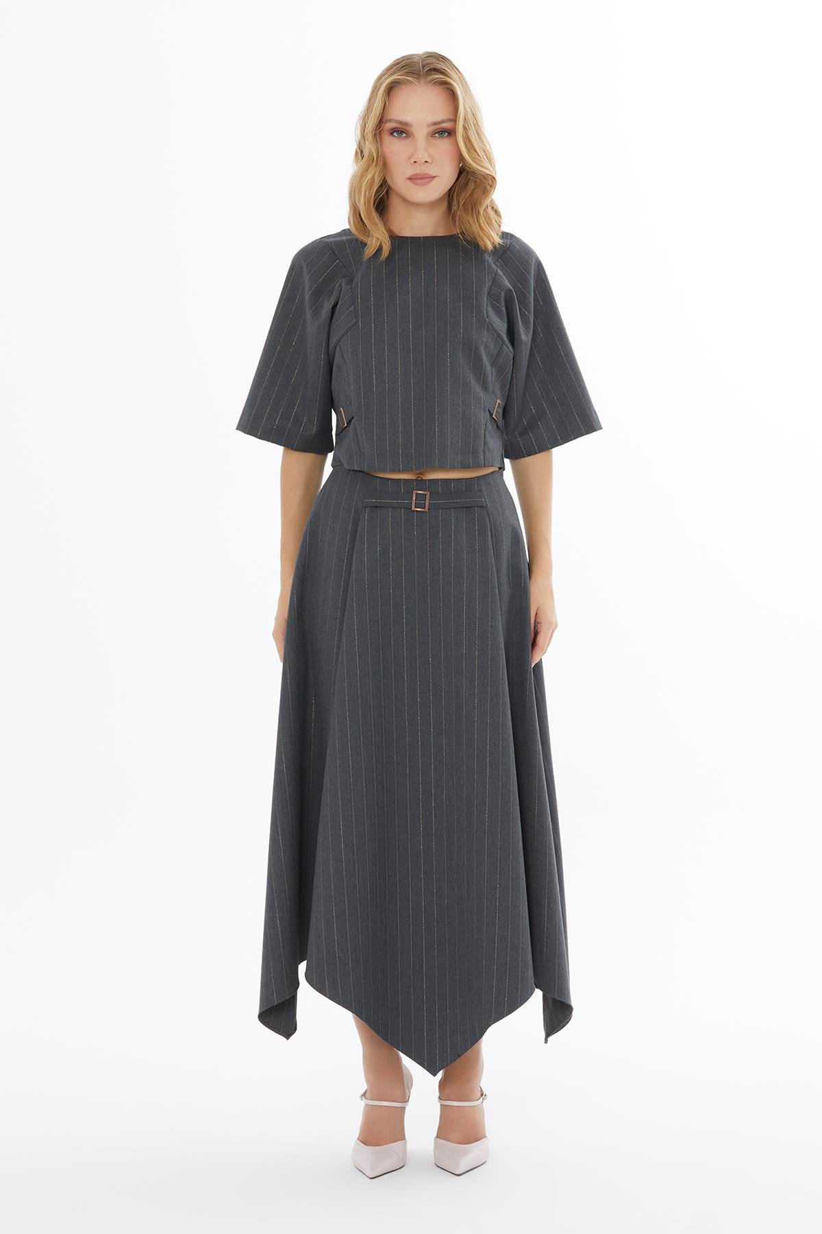 Yandan Fermuarlı Pili Dertaylı Asimetrik Uçlu Gri Etek (M5KM3M0401)