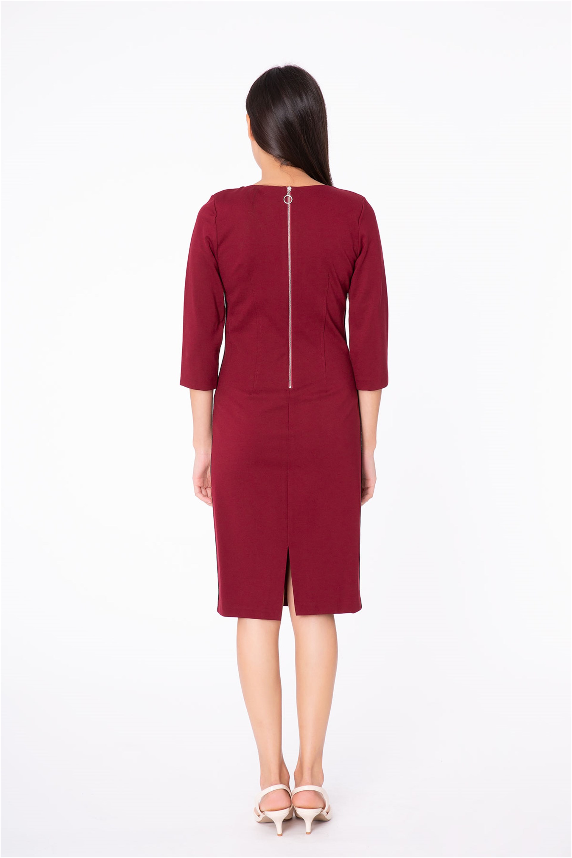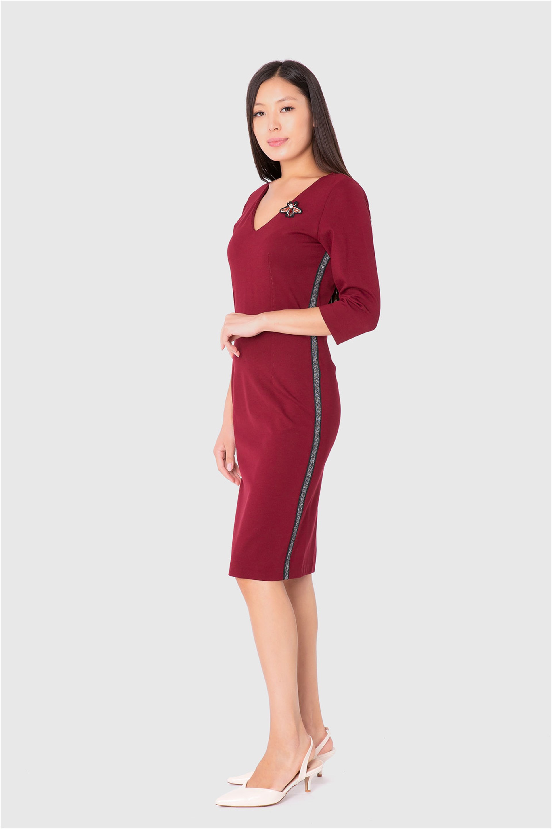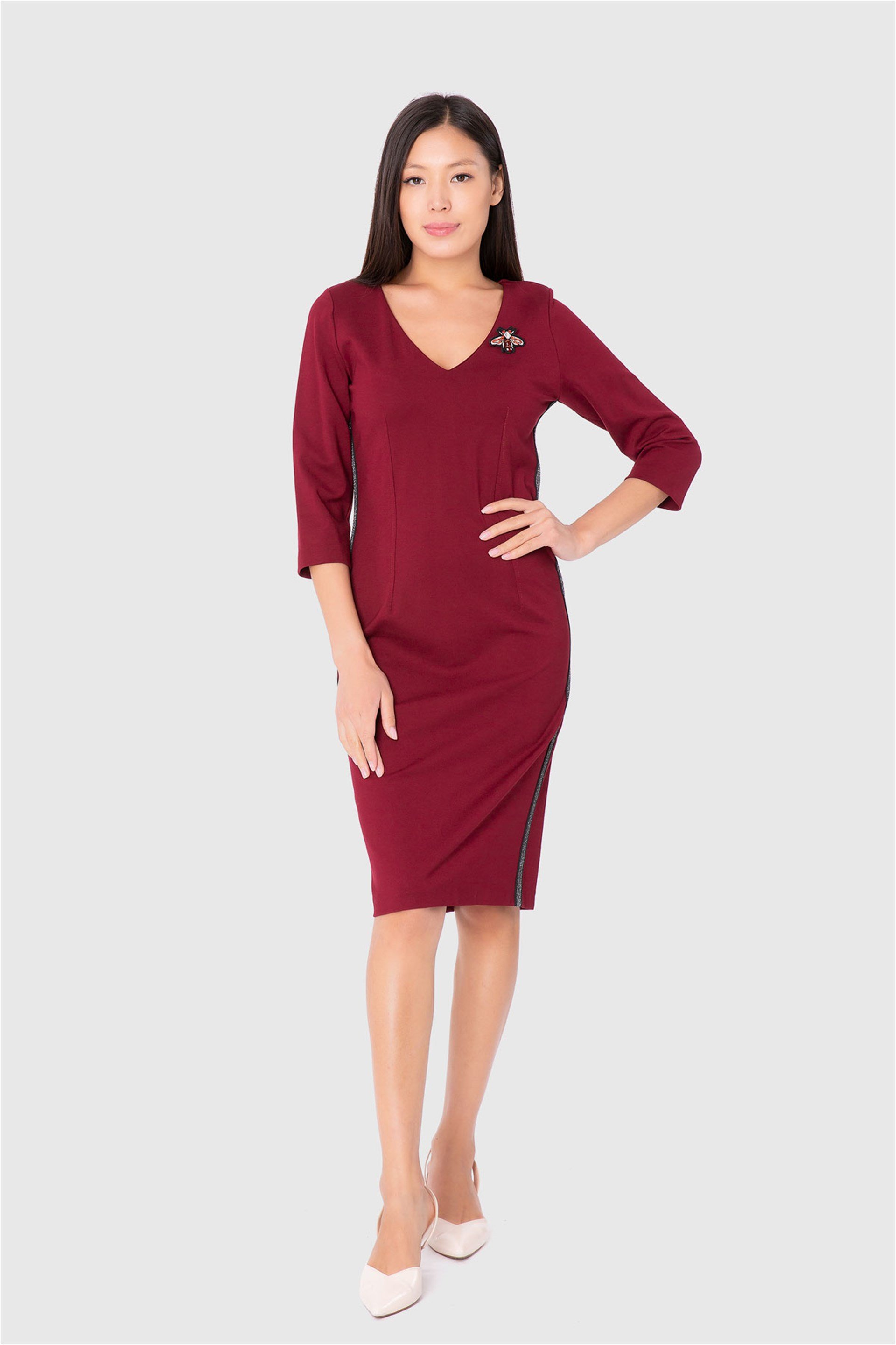 Yandan Şeritli Broş Detaylı Fermuarlı Mor Elbise (M18KZX0221)